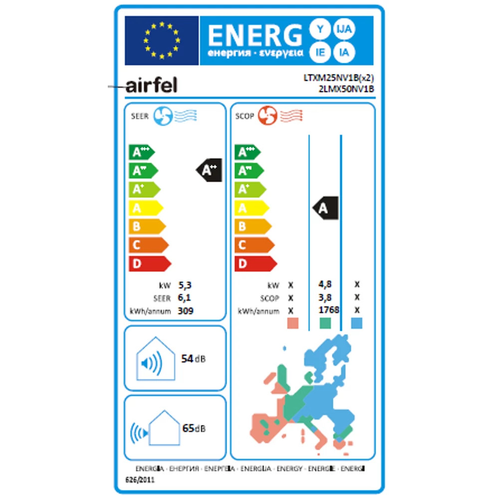 Ismerje meg kiváló minőségű Airfel 2,8kW + 3,6kW inverteres dual split klímánkat! A klíma hűtésre és fűtésre egyaránt alkalmas. Hűtése A++, a fűtése A+ energiaosztályú. Az új szezonális hatékonysági mutatóink az EU-s szabályoknak megfelelően A++ besorolásúak. Hűtési jóságfoka (SEER): 6,1 / Fűtési hatásfoka (SCOP): 3.8