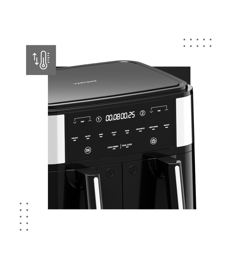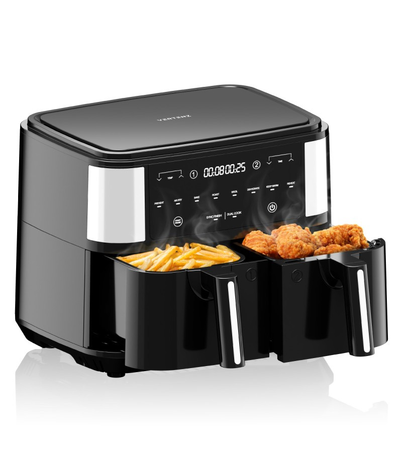 Airfryer forrólevegős fritőz, 2600 W, 8 Program, 9 L kapacitás, Led kijelző, fekete
