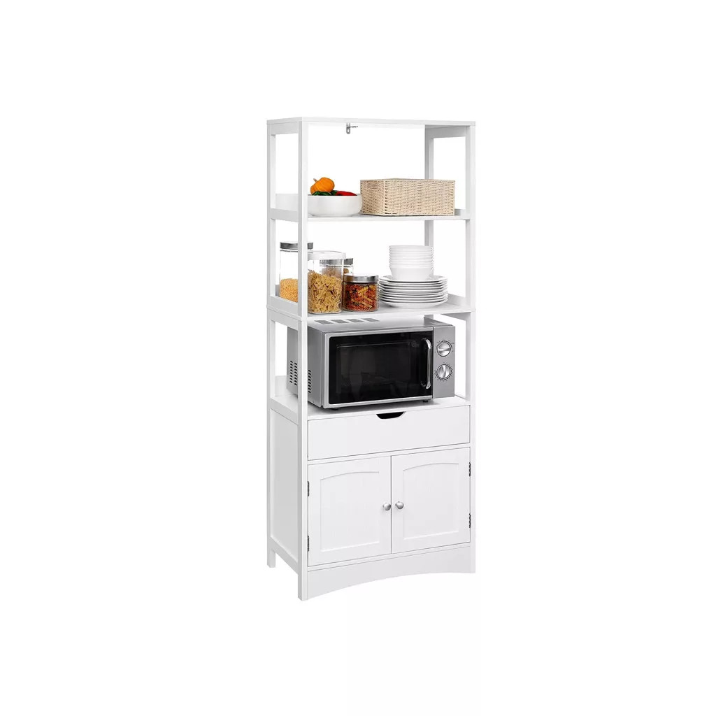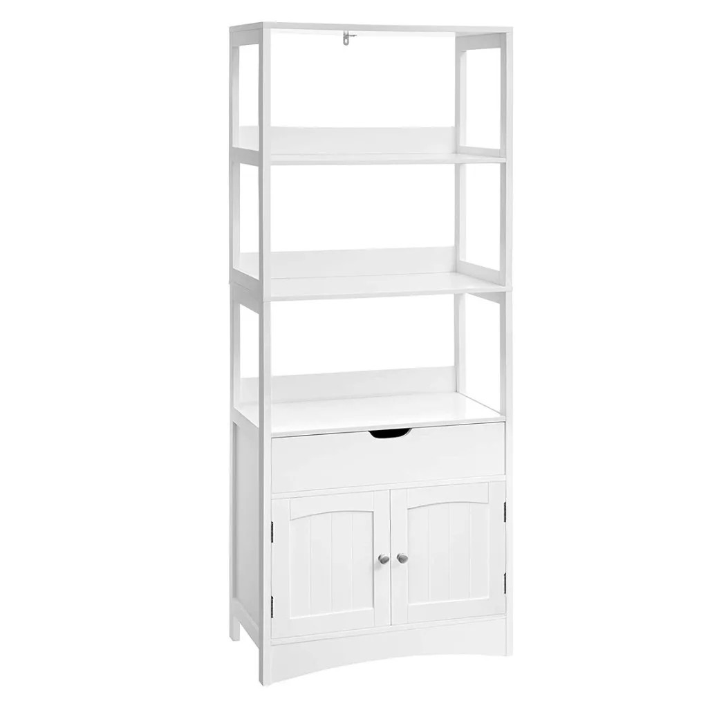 VASAGLE Álló fürdőszoba szekrény fiókkal és szerkénnyel, 3 polccal, fehér, 60 x 32 x 154 cm