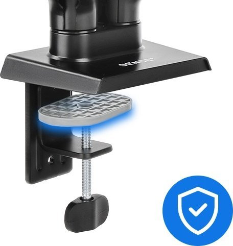 A kar kétféle rögzítési móddal rendelkezik: szorítással vagy fúrással. A szorítók közötti távolság 10-80 mm, így a tartó gyakorlatilag bármilyen asztalra felszerelhető.
