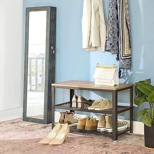 Tartós Kialakítás: Robusztus acélkeretből és forgácslapból készült, a masszív cipőpad akár 90 kg-ot is elbír; miért ne ülne le kényelmesen, miközben cipőt köt vagy másokra vár?