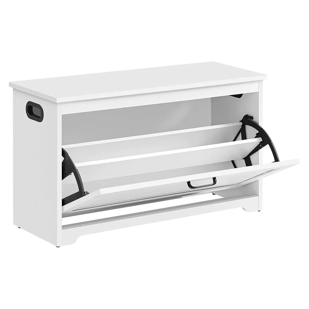 VASAGLE Cipőtároló pad, lenyitható tárolóval, fehér 80 x 30 x 46 cm