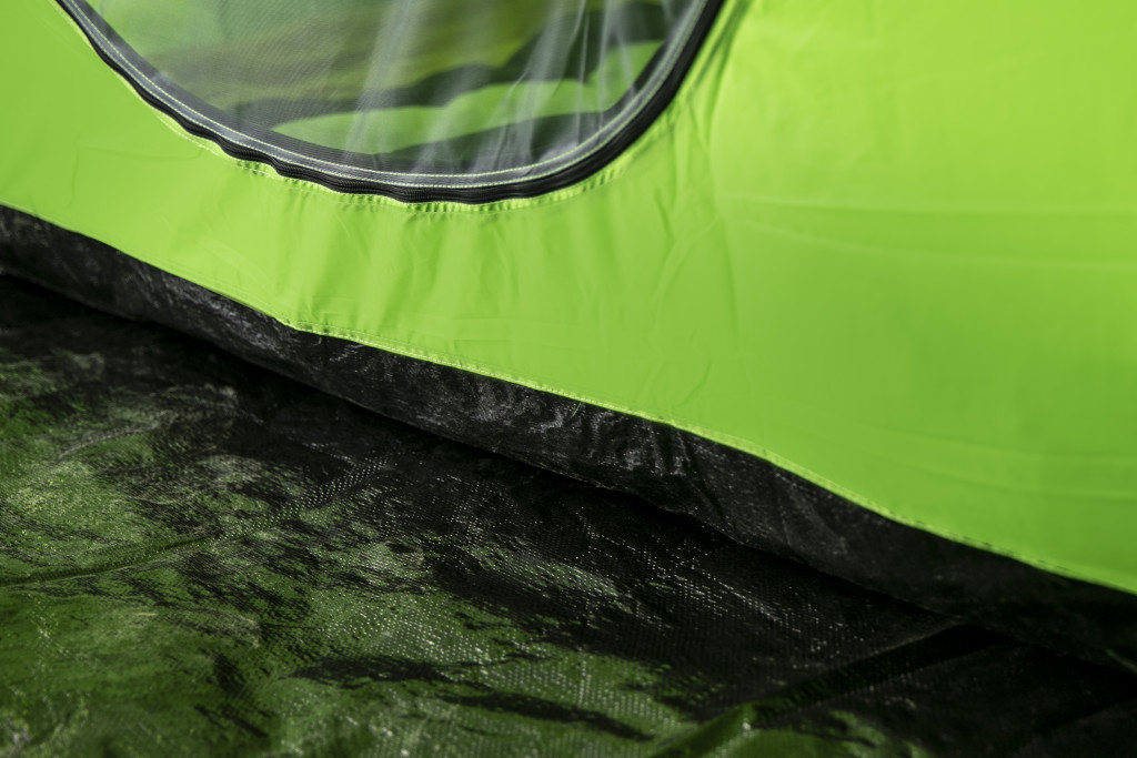 A sátor vízálló ponyvával és talajtakaróval rendelkezik, így kényelmes pihenést biztosít kedvezőtlen időjárási körülmények között is. Az eső, az esti köd és a reggeli pára nem jelent akadályt. A víznek leginkább kitett, ragasztott varratok további védelmet nyújtanak. A lélegző hálózsák könnyű légzést biztosít, és megakadályozza a páralecsapódást a sátorban.
