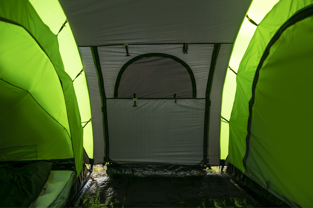 A fedett ablakok nappal bevilágítják a hálószobát, és lehetővé teszik a sötétítést a jobb alvás érdekében. A bejáratoknál található kivehető szúnyoghálók hatékonyan megakadályozzák a rovarok bejutását. A hálószobákban található zsebekben kéznél tarthatja pénztárcáját, okostelefonját vagy zseblámpáját, az előszobában pedig a mennyezeti tartóra lámpa rögzíthető.