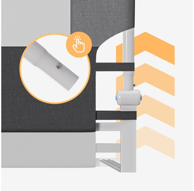 Kétféle rögzítési magasság teszi lehetővé a matrachoz és az ágyhoz való jobb illeszkedést.