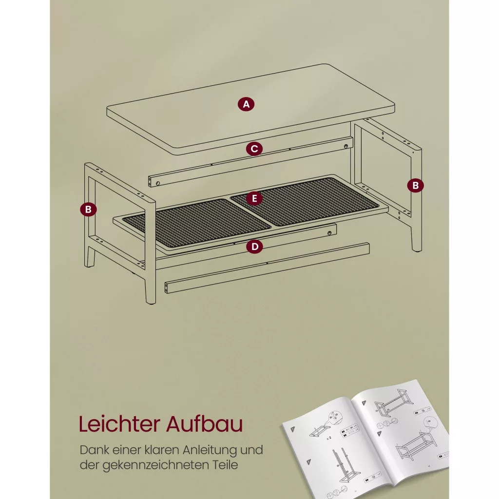 Könnyed összeszerelés: A világos utasításoknak és a jelölt alkatrészeknek köszönhetően a kanapéasztal gyorsan és könnyedén összeszerelhető. Rövid időn belül élvezheti kedvenc italait rajta.