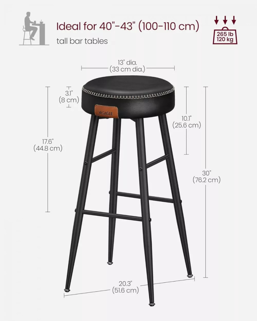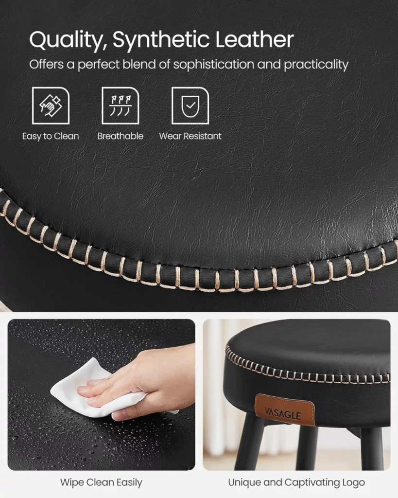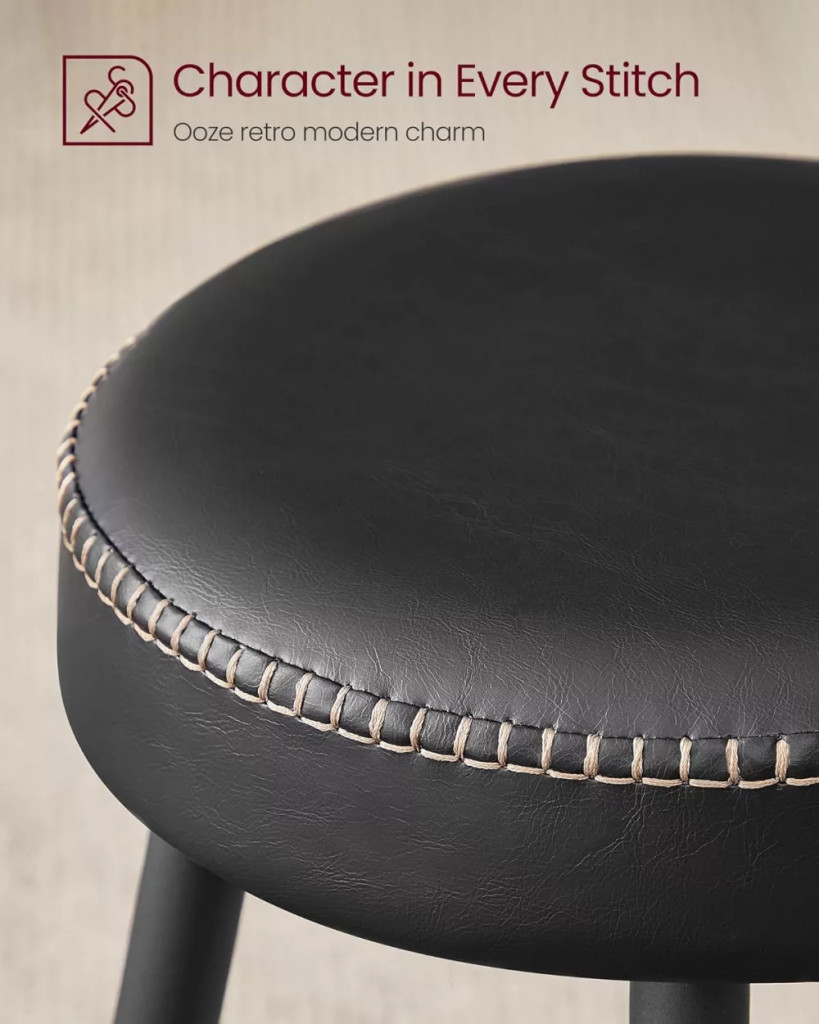 VASAGLE ECHO Bárszék 2 db, varrott műbőr borítás, fekete, 76 cm magas