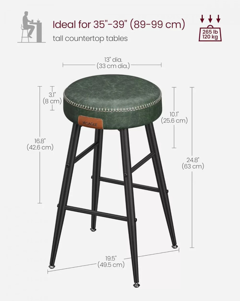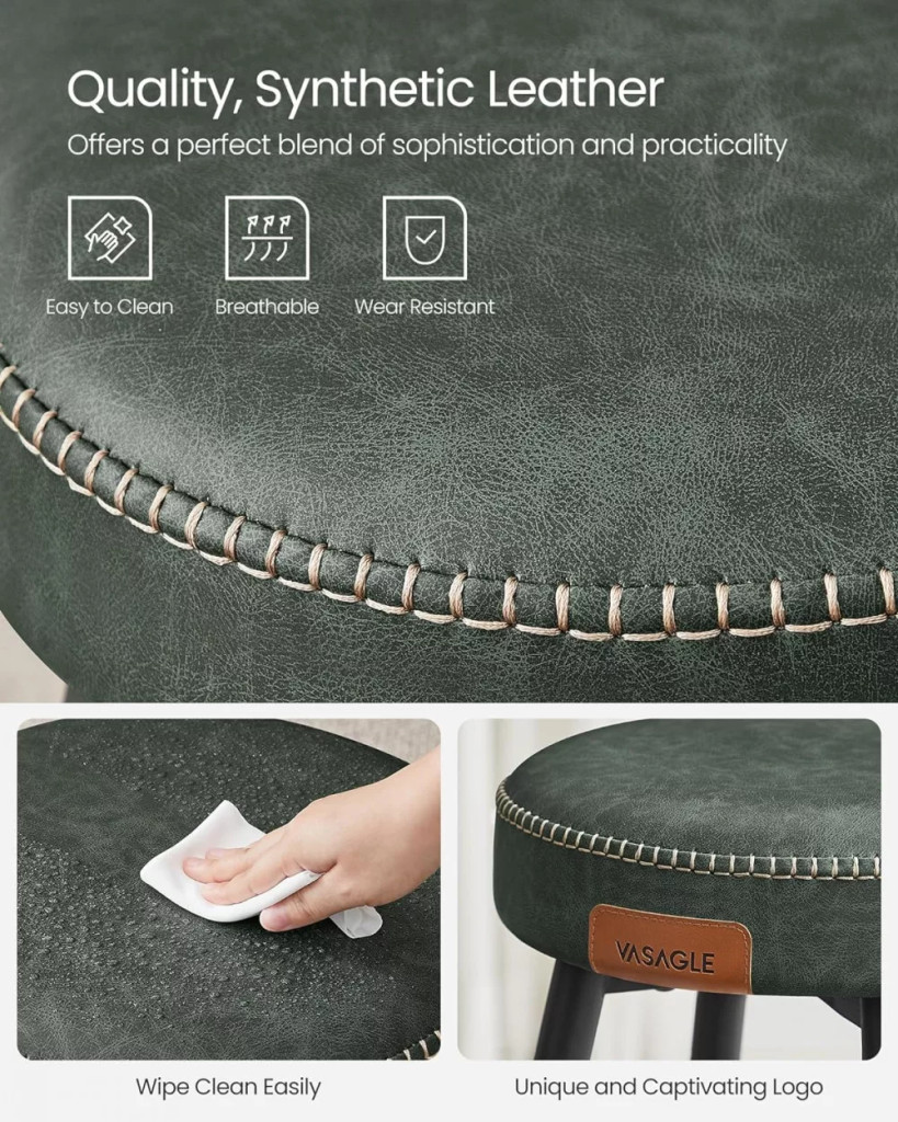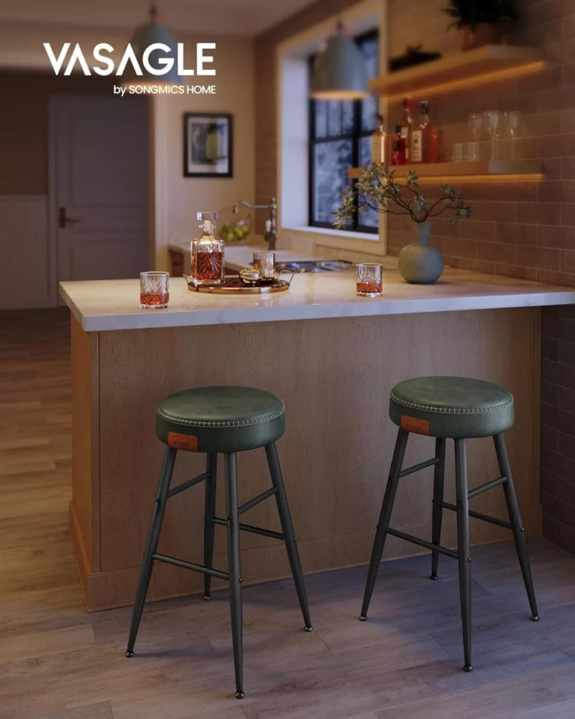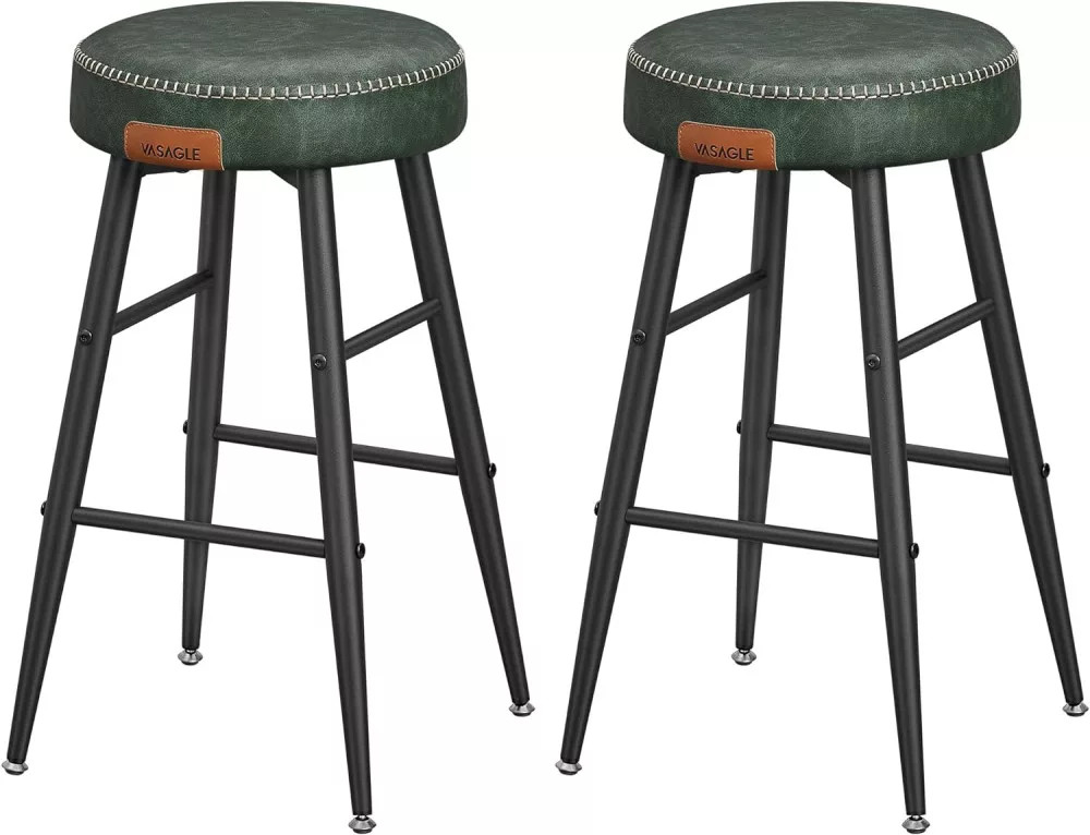VASAGLE ECHO Bárszék 2 db, varrott műbőr borítás, zöld, 63 cm magas