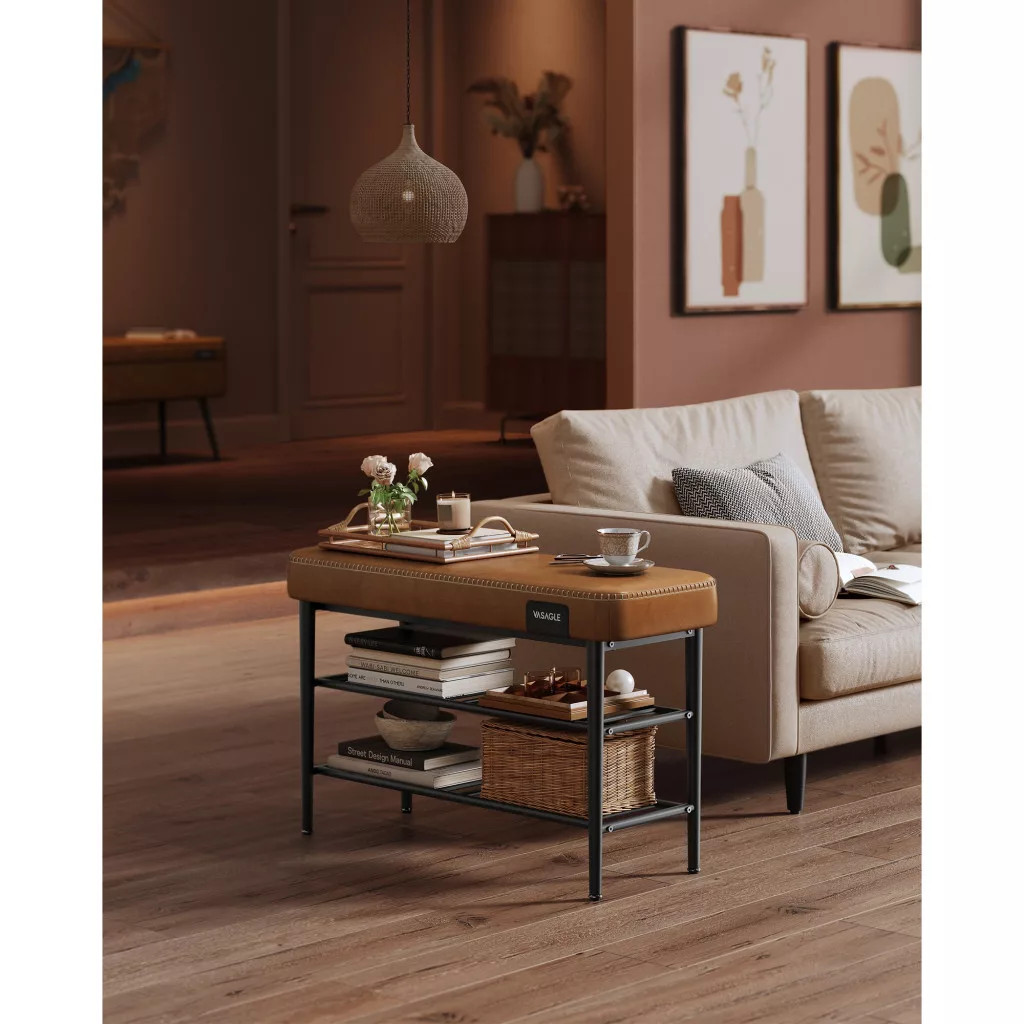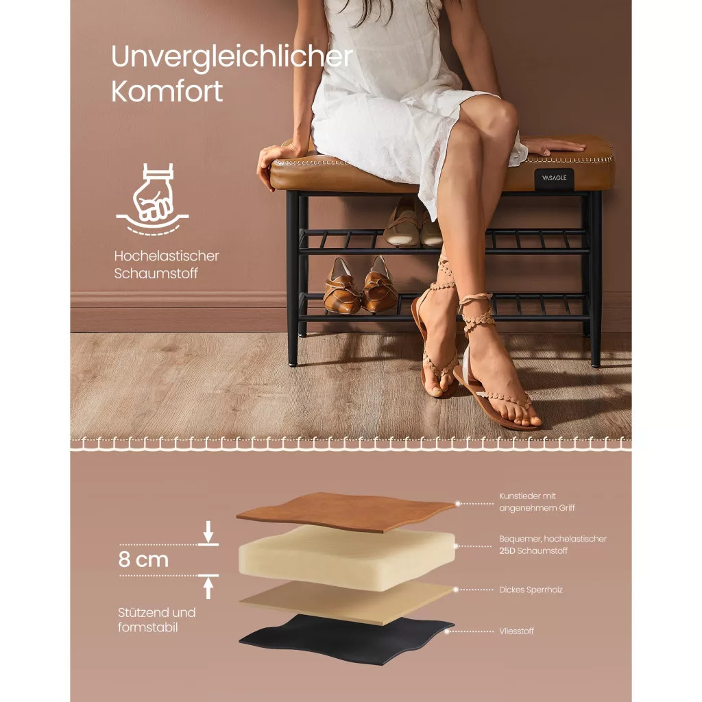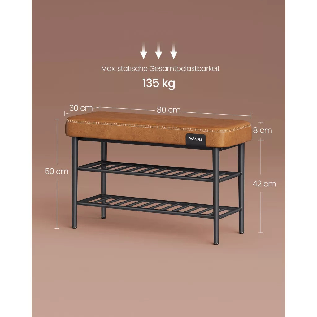 VASAGLE ECHO cipőpad 2 szintes, műbőr borítás, barna, 30 x 80 x 50 cm