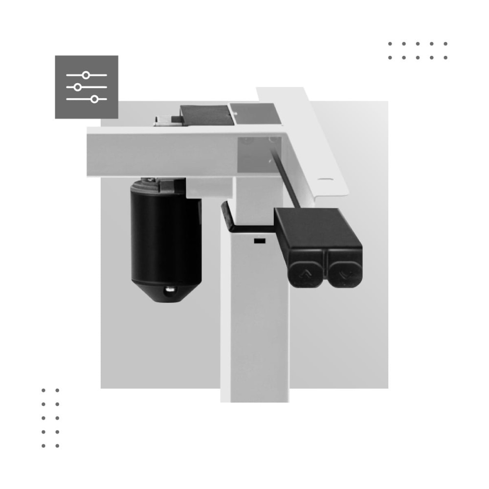 A tetejének magassága egy kényelmes kezelőpanelen keresztül állítható. Mindössze két gombbal állíthatja be az íróasztalt ülő vagy álló helyzetbe. A panel ergonomikus helyen van elhelyezve, így mindig könnyen elérhető helyen van.