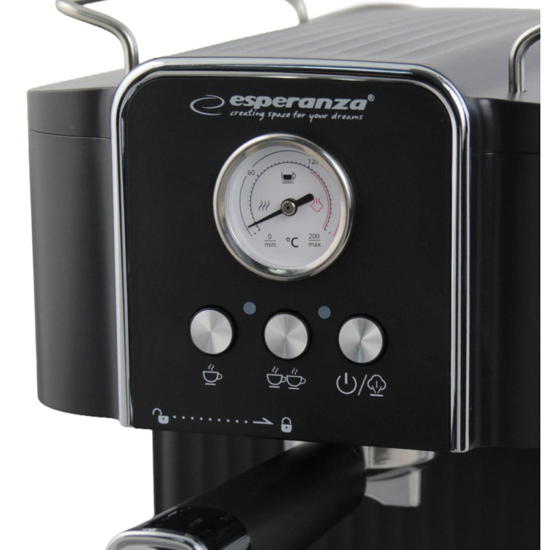 Az Esperanza Excelsa (EKC010) a tökéletes választás otthoni eszpresszó szerelőknek: erős 20 bar nyomás, nagy 1,8 literes víztartály és beépített tejhabosítóval krémes cappuccino vagy latte készíthető. Kompakt, modern fekete-inox megjelenés, gyors felmelegedés és egyszerű használat jellemzi – ideális napi 4–8 adaghoz családnak vagy kis irodába.