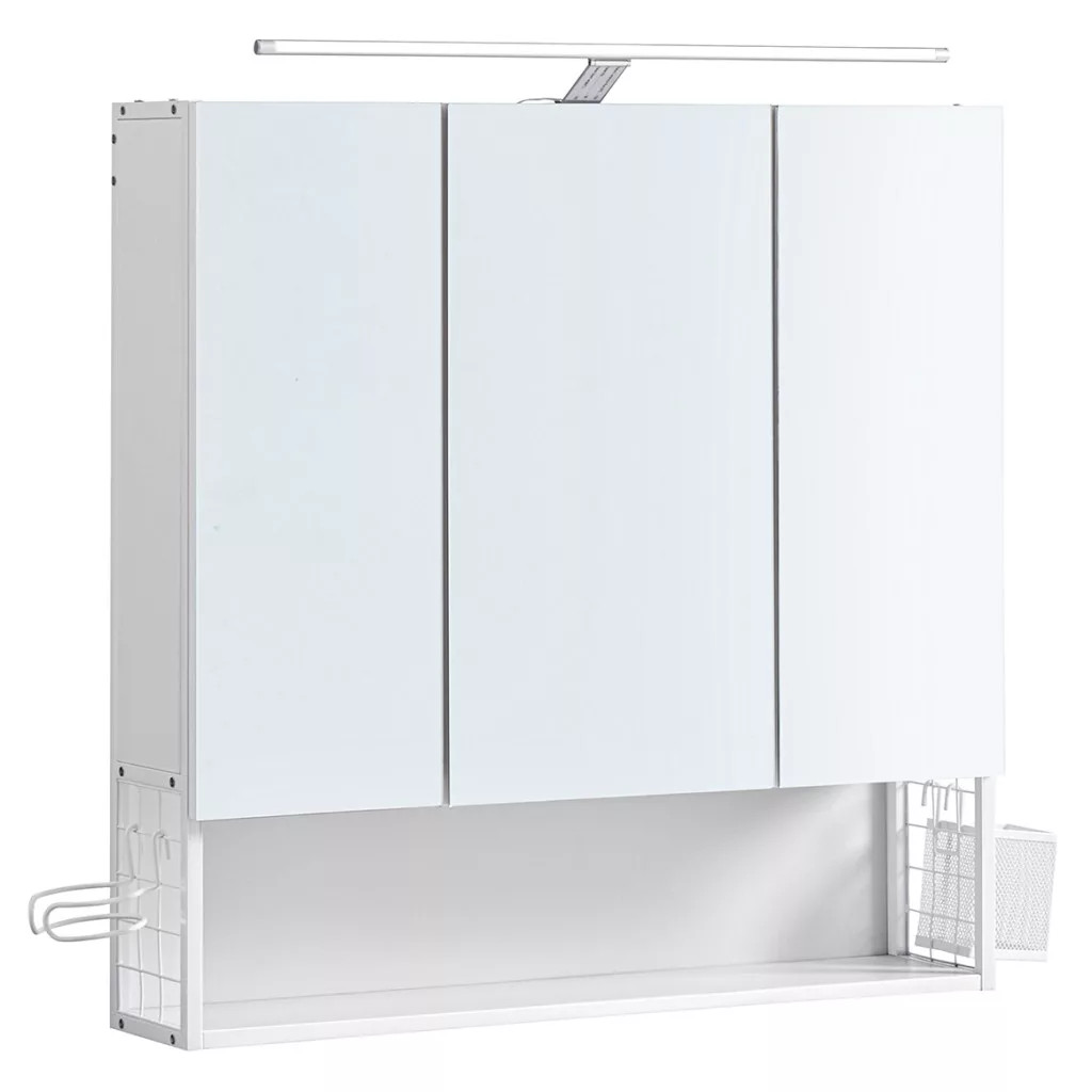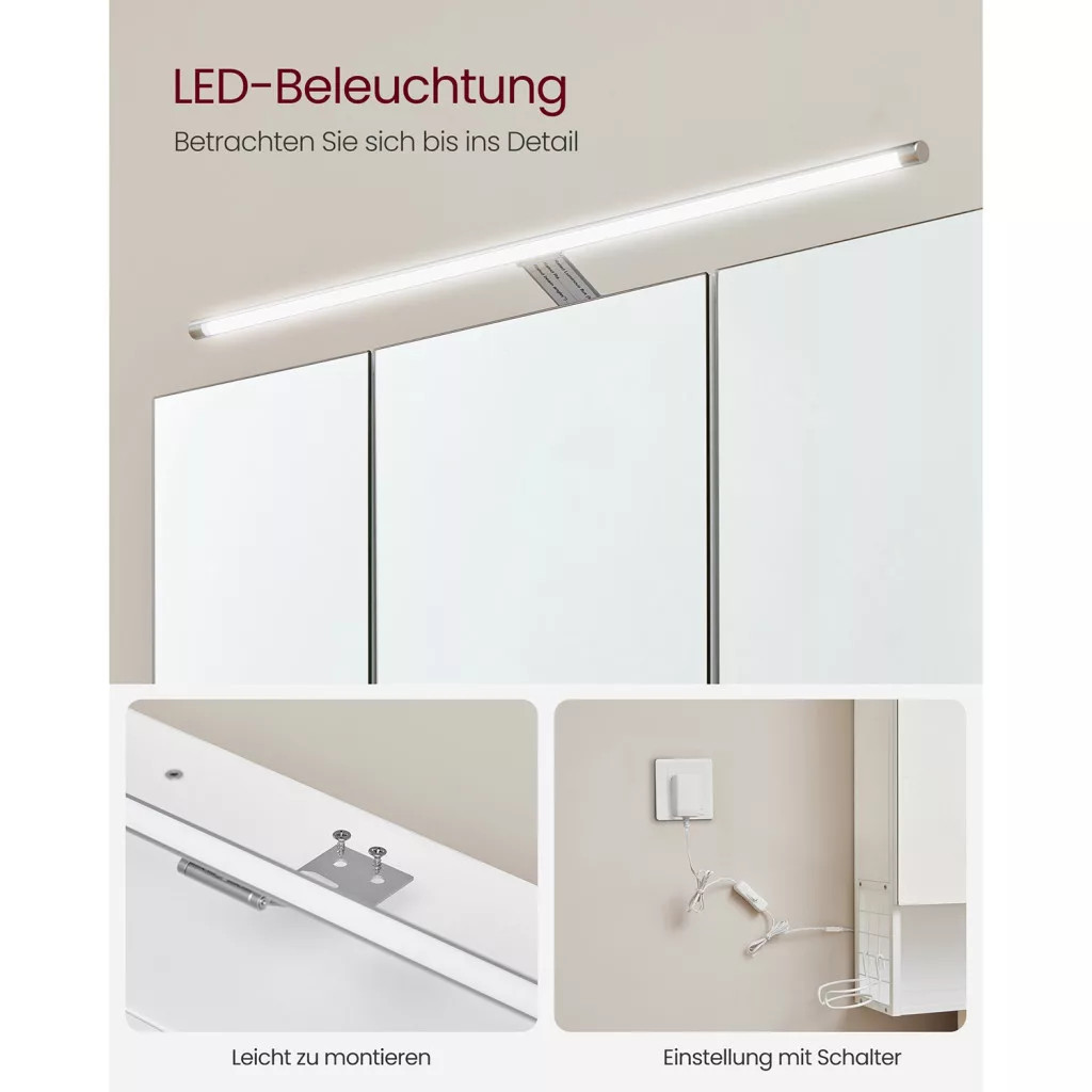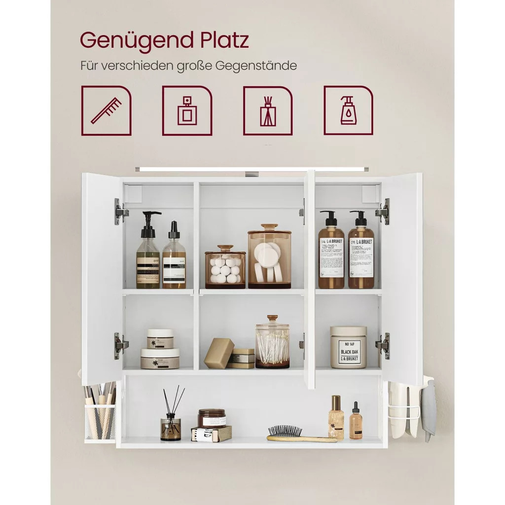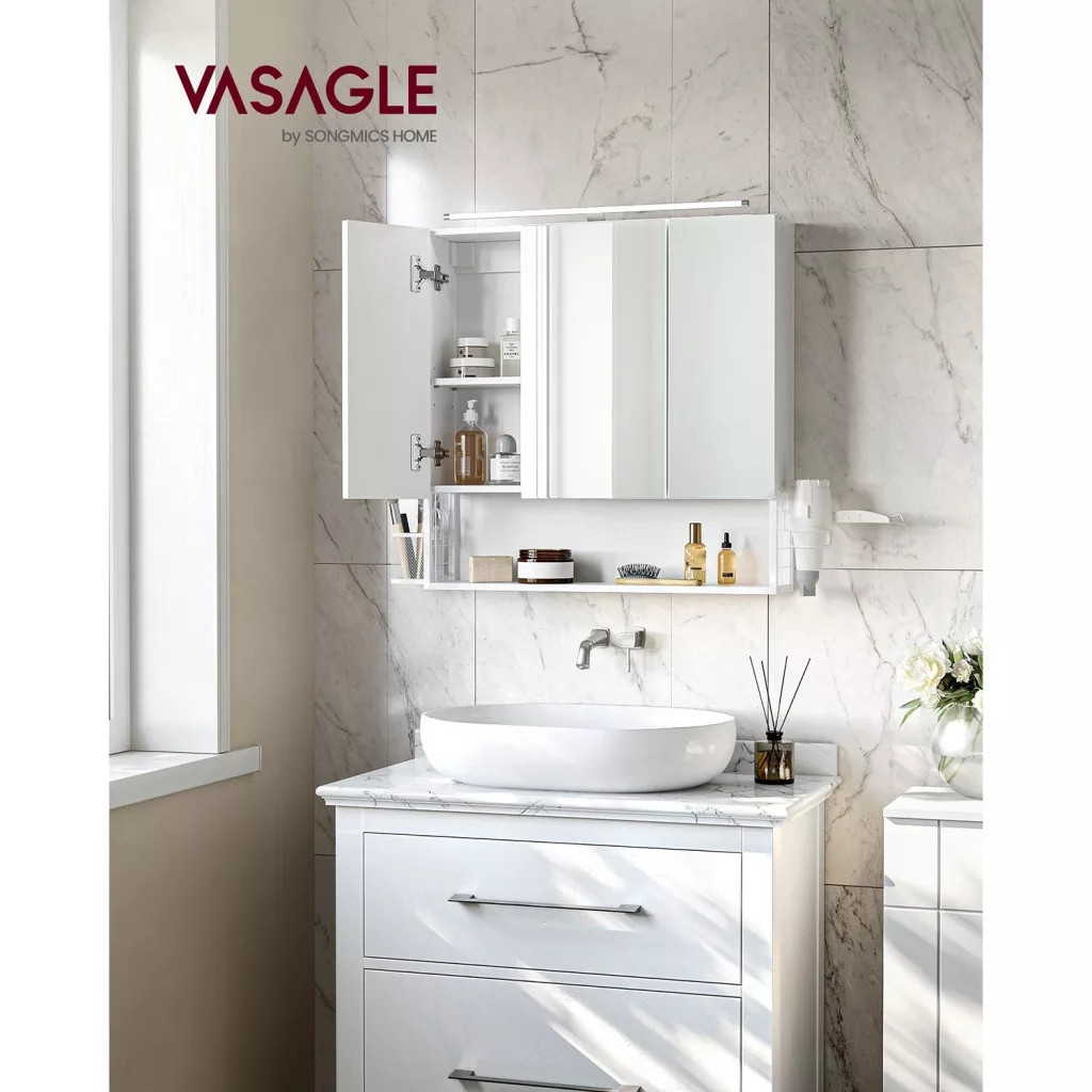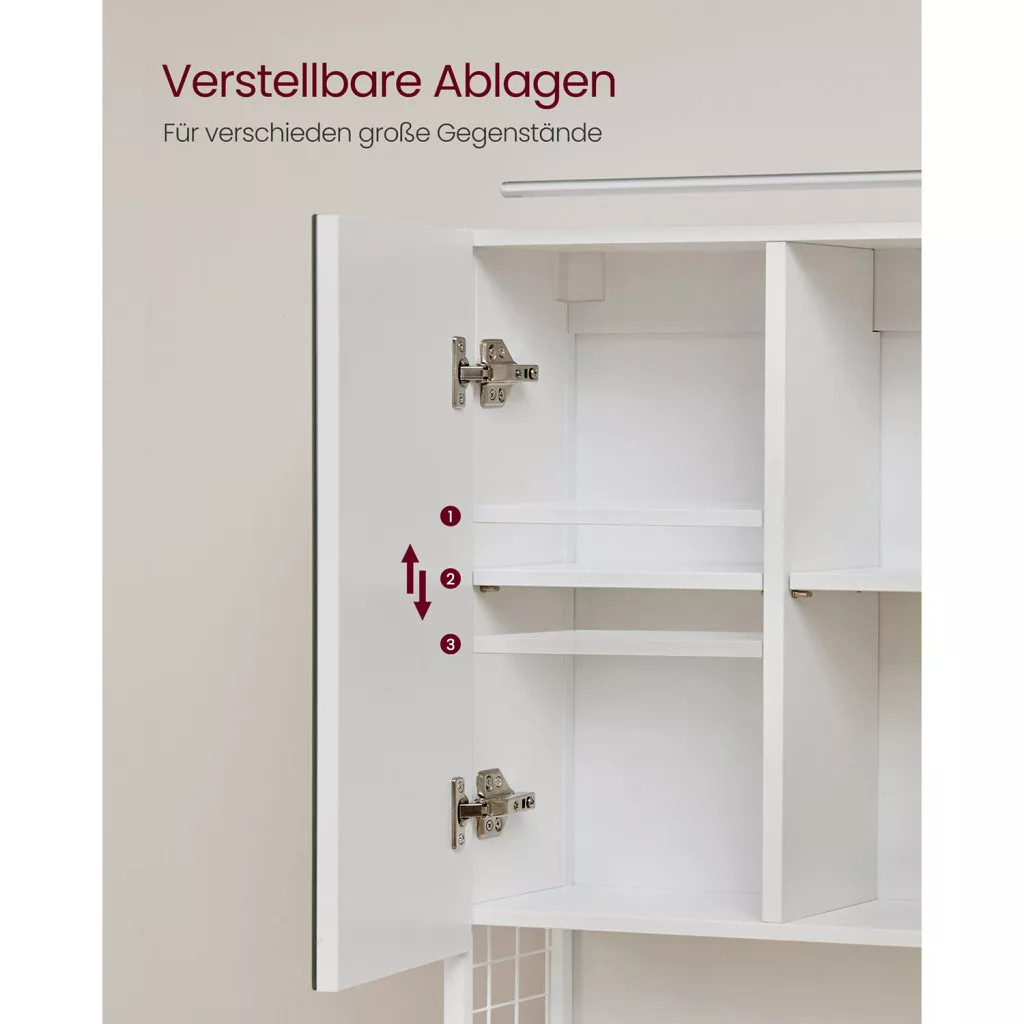 VASAGLE Fali tükrös 3 ajtós fürdőszoba szekrény, fehér 15x70x70cm