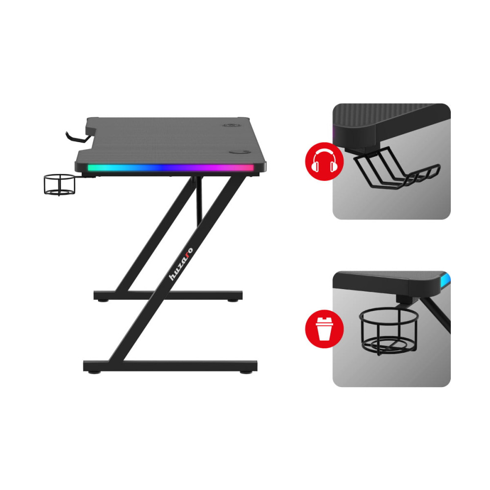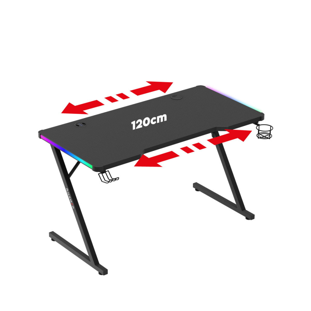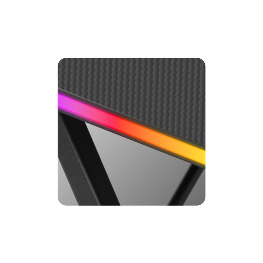Az asztallap szélein elhelyezett RGB LED-csíkok elképesztő játékkaraktert kölcsönöznek az íróasztalnak. Ha az íróasztalt falhoz vagy bútorhoz helyezi, különleges hangulatot teremt, mivel a fény visszaverődik a környező tárgyakról, és hatékonyan megvilágítja az egész munkaállomást.