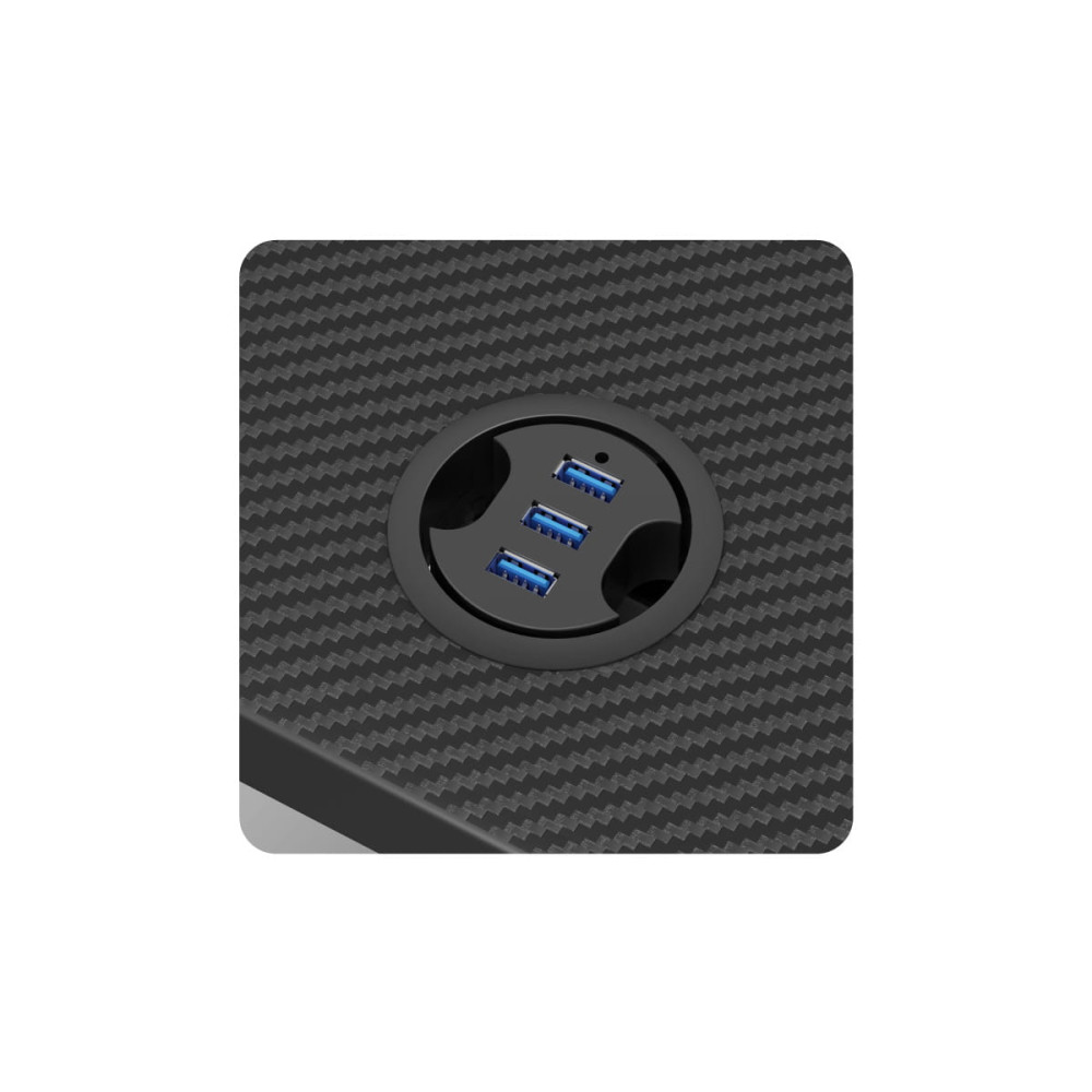 Az íróasztal szimmetrikusan elhelyezett kábelbevezetéssel rendelkezik, így mindenkinek lehetősége van arra, hogy az egész íróasztalt tetszése szerint helyezze el. Az íróasztal bal oldalán található bemenet ráadásul három USB 2.0 aljzattal van ellátva a készülékek töltéséhez.