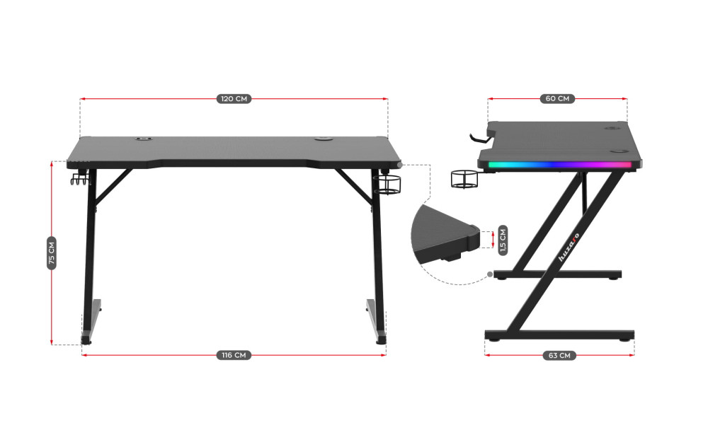 Robusztus, praktikus, funkcionális - ez a Hero 2.5 RGB játékasztal. Ez azonban csak a történet fele. A játékdizájn, a szénszálas anyagból készült kivitel és az RGB LED-világítás. A Hero 2.5 RGB ezen jellemzői kellemes látványt nyújtanak, és megkülönböztetik a bútort a piacon. A funkcionalitás és a gaming wow-faktor a siker receptje