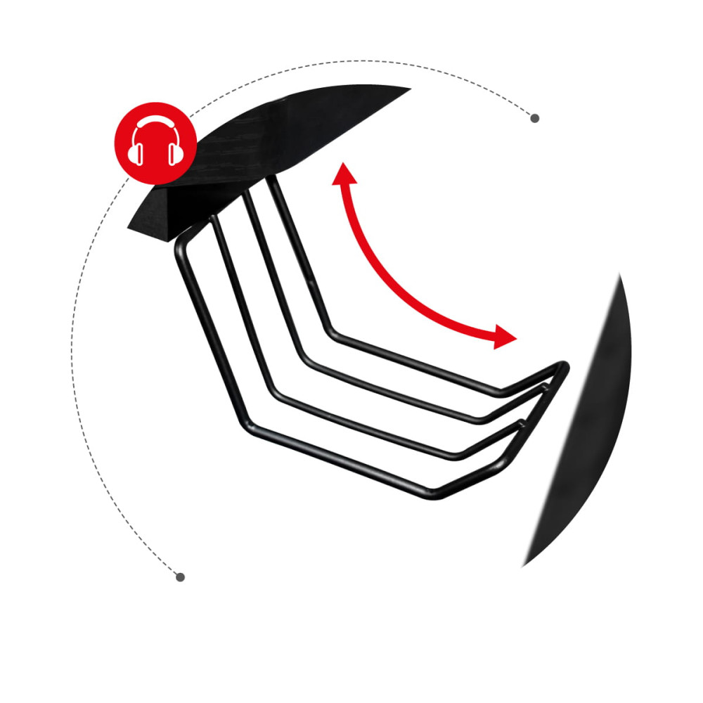 Kényelmes és praktikus fejhallgató tartó. Még akkor is, ha nem használja a fejhallgatót, biztonságosan akasztható anélkül, hogy helyet foglalna az asztalon. A fogantyú gyorsan és kényelmesen elrejthető az asztal alá.