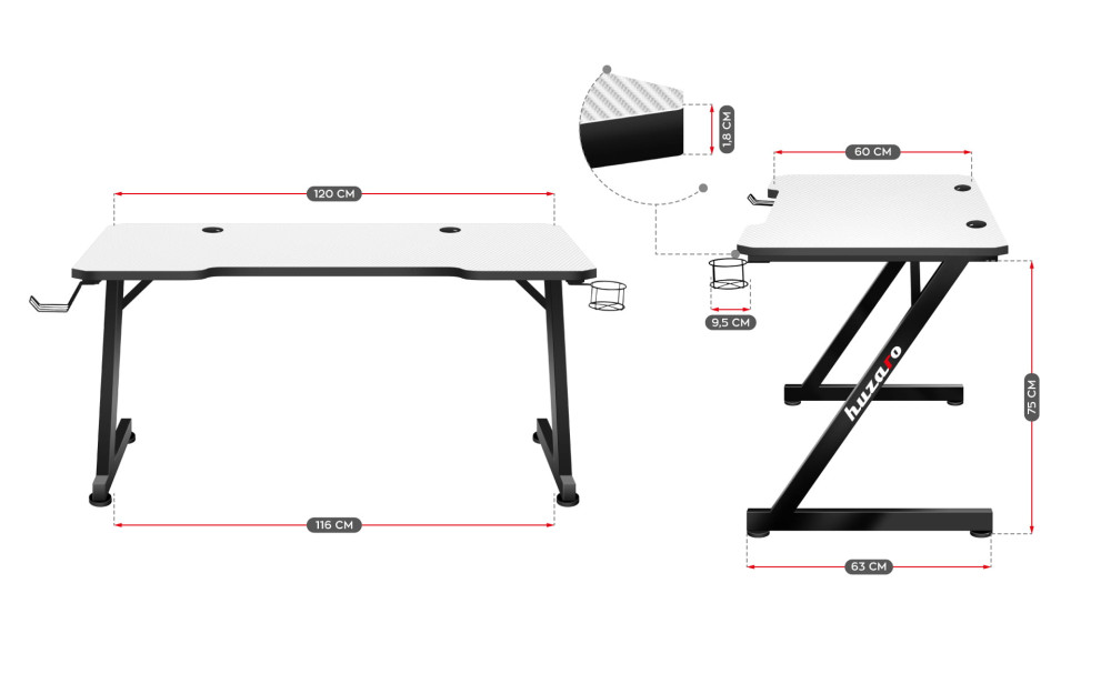 Az asztal két bemenettel rendelkezik a kábelek rendezéséhez. A bemenetek az asztal mindkét oldalára vannak szerelve, így a telepítéstől függetlenül a játékállomás mindig rendben lesz.