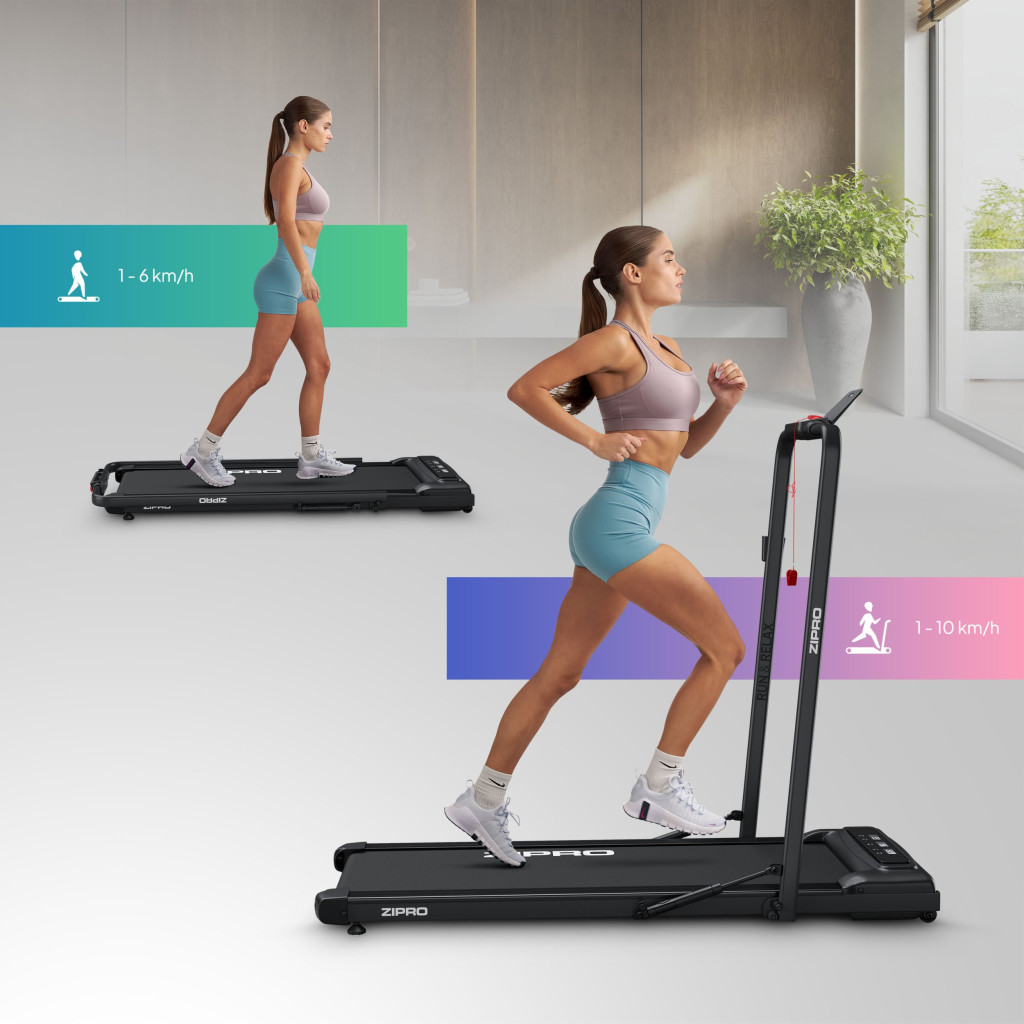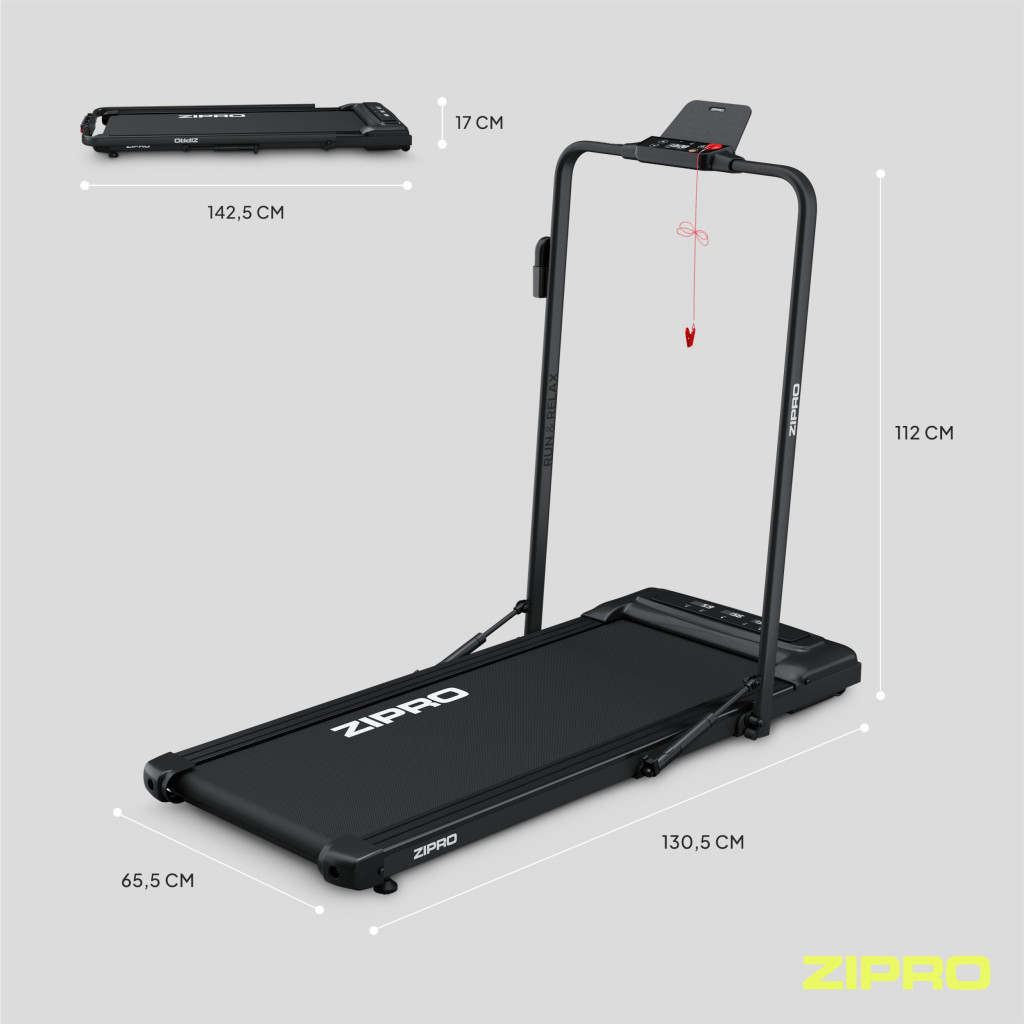 A ZIPRO Newlite a tökéletes megoldás azok számára, akik fittek szeretnének maradni anélkül, hogy feláldoznák a felelősségüket. Az összecsukható fogantyúnak köszönhetően a futópad könnyen átalakítható kompakt járóeszközzé a munkavégzéshez – egyszerűen csúsztasd az asztalod alá, és már indulhatsz is. Nagyszerű módja a kalóriák elégetésének, a vérkeringés javításának és az energiaszint növelésének távmunka vagy online megbeszélések közben.