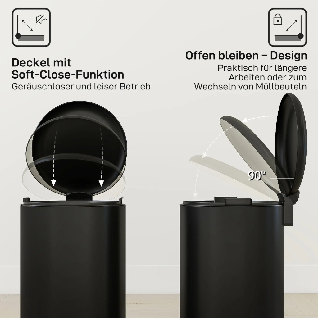 Fedezze fel a szemetest: kompakt, 30 literes űrtartalommal, tökéletes bármilyen helyiségbe. Csendes működés a lágyan záródó fedélnek köszönhetően, kézhasználat a pedállal. A kivehető belső vödör és a nyitott fedél megkönnyíti a szemeteszsákok tisztítását és cseréjét. Az ujjlenyomat-taszító felület tisztán és stílusosan tartja a pedálos szemetest. Ideális konyhába, irodába vagy fürdőszobába.