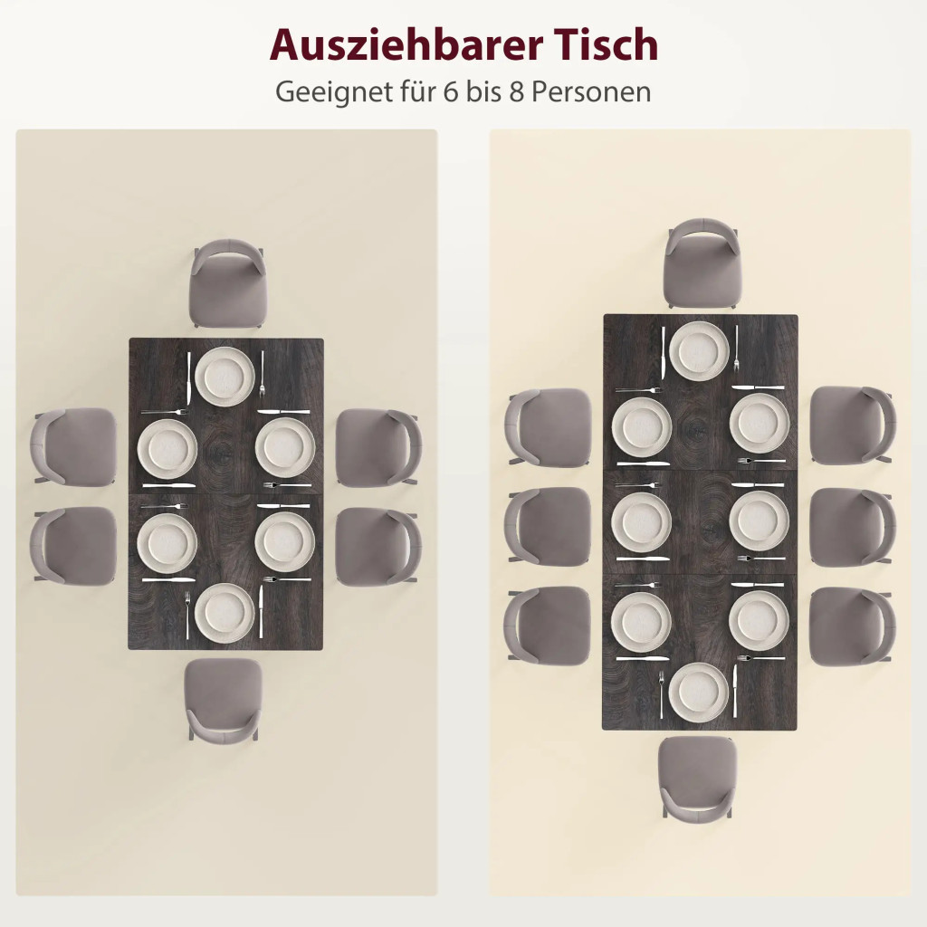 Tapasztalja meg a HOMCOM kihúzható étkezőasztalának rugalmasságát: egy okos helytakarékos, amely könnyedén bővíthető 6-ról 8 férőhelyesre.