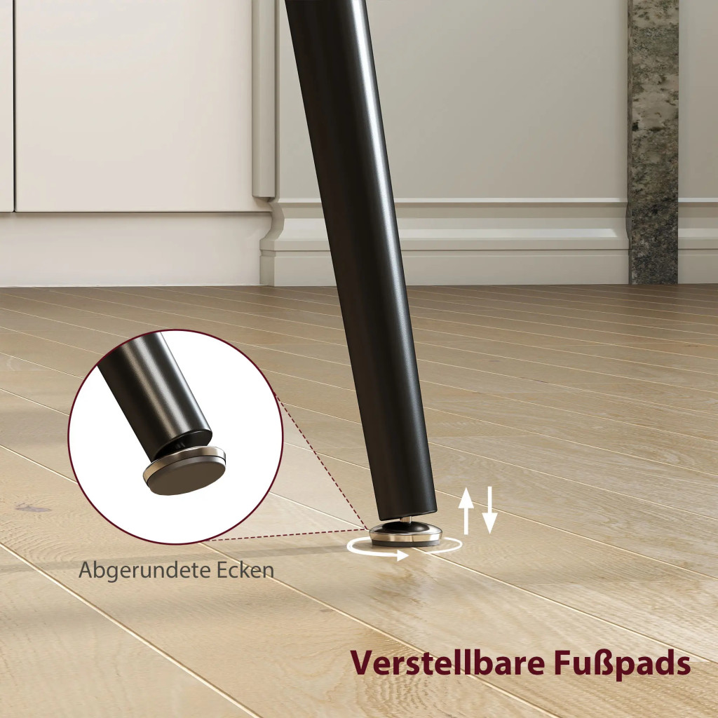 Fokozott biztonság: A konyhaasztal masszív acélvázának, állítható lábtartóinak és lekerekített sarkainak köszönhetően minimalizálható az ütések és zúzódások kockázata.