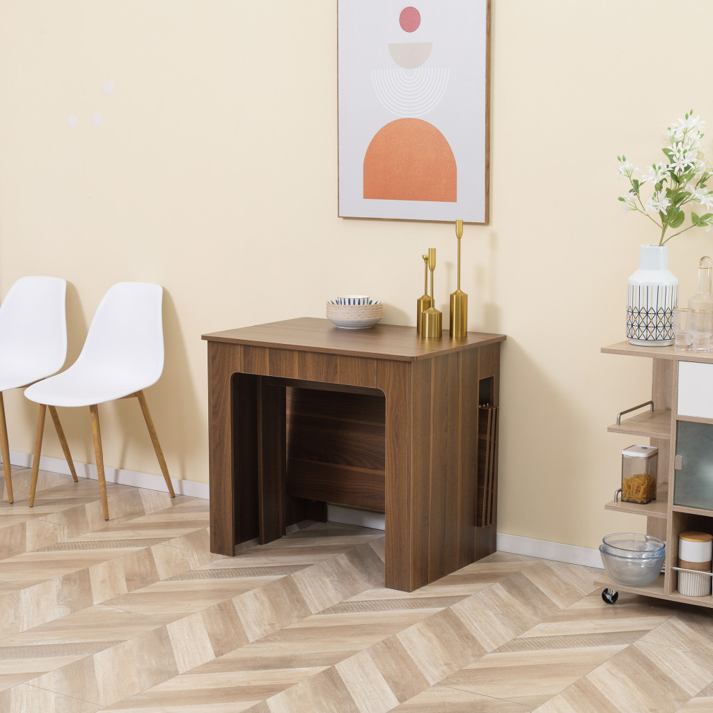 Dobd fel étkeződet praktikus eleganciával! Innovatív mechanizmusának köszönhetően ez a HOMCOM kihúzható étkezőasztal 60 cm-től 180 cm-ig állítható, így akár hat fő is kényelmesen elfér rajta. Az étkezőasztal állítható mérete ideálissá teszi kisebb helyiségekbe. Az asztal sima felülete könnyen tisztítható, így gyorsan letörölheted róla a kiömlött folyadékokat és foltokat.