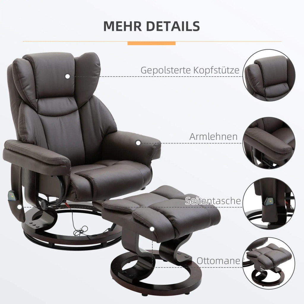 Masszázs funkció: A relaxfotel összesen tíz masszázsponttal rendelkezik: hat a hát és az ágyéki régióban, kettő pedig a felső és alsó lábszáron. Ez garantálja a kellemes ellazulást.