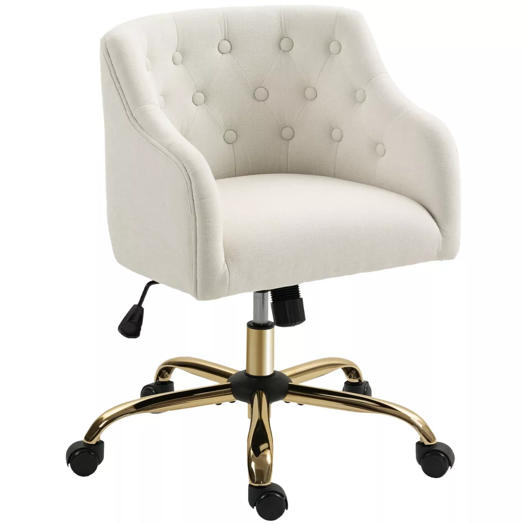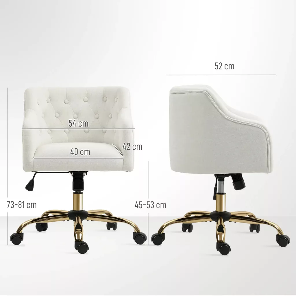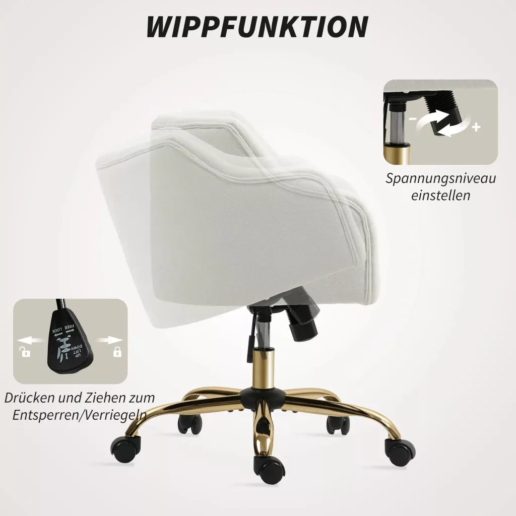Dobd fel irodád hangulatát a HOMCOM irodai székkel, amely a vintage stílus és a kényelem tökéletes ötvözete. Az elegáns gyémántmintás dizájn és a gombos díszítés, valamint a feltűnő arany színű lábak kifinomultságot kölcsönöznek bármely helyiségnek. A forgószék vastag, puha ülőfelülete és légies, vászonszerű anyaga tartós kényelmet biztosít. A ringató funkció lehetővé teszi a pihentető, gyengéd ringatózást is.