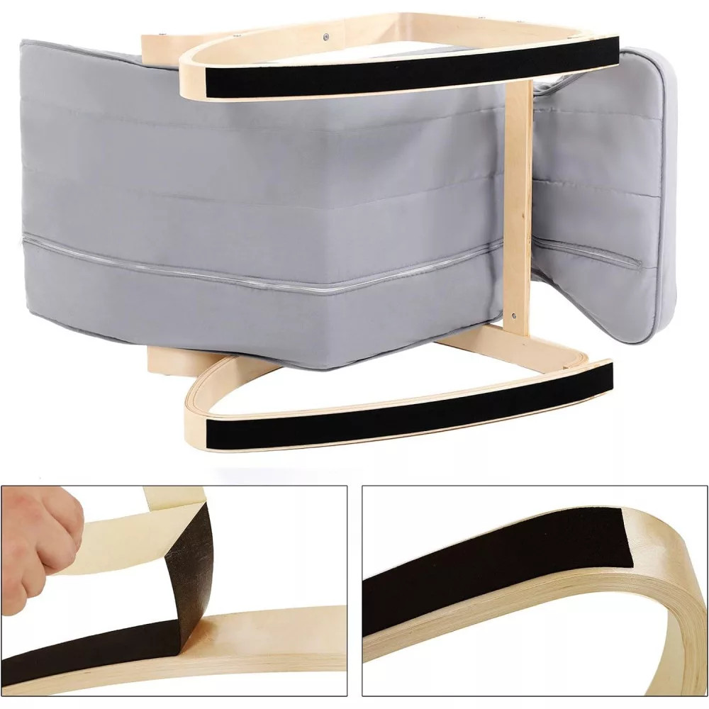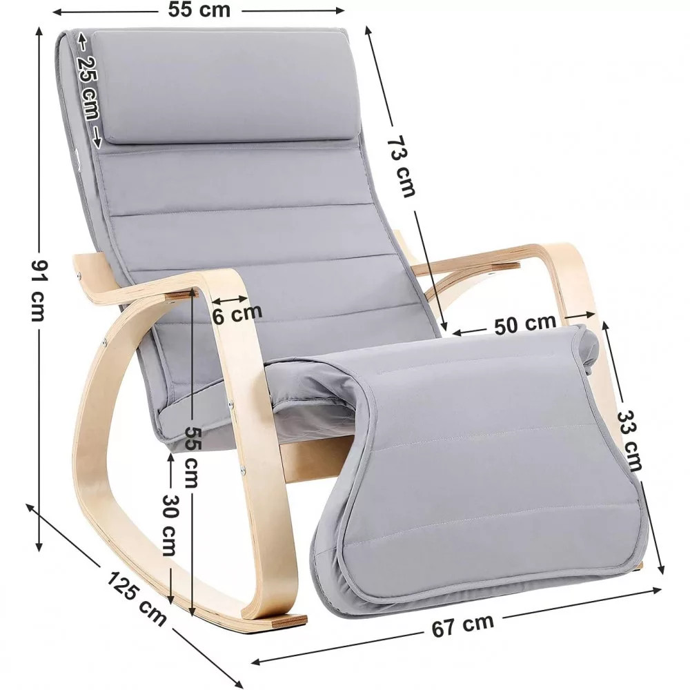 Megkönnyíti a leülést és a felkelést: a lábtartó nemcsak 5 állítható pozícióval rendelkezik, hanem praktikus, befelé ívelt formájú is. Egyszerűen üljön le erre a hintaszékre, és finoman hintázzon előre-hátra.