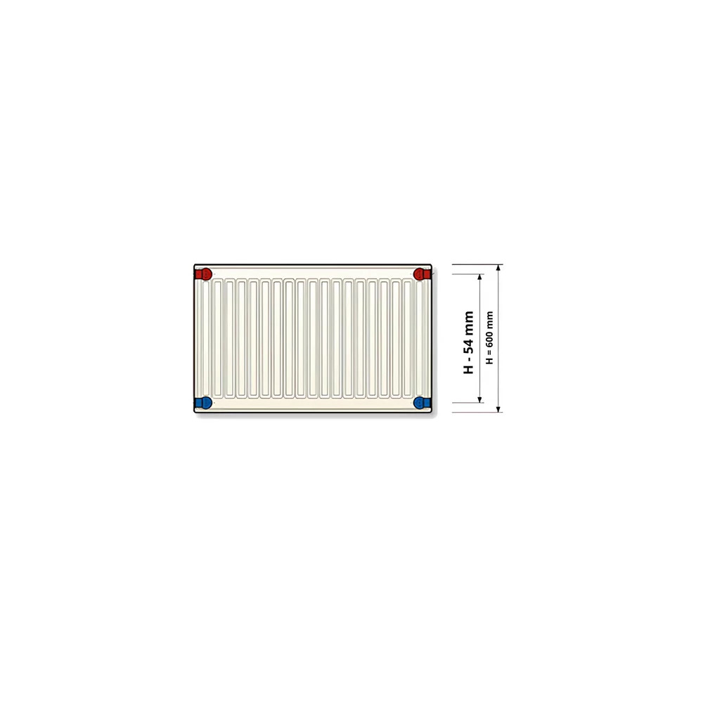 A radiátorok hidegen hengerelt, magas minőségű acéllemezekből készülnek, acéllemez vastagság: 1,15 mm, konvektor lemezvastagság: 0,30-0,35mm 33,3 mm osztásközzel ellátott bordázat Szerelési egységcsomag tartalmazza a konzolt, záródugót, légtelenítőt, tiplit és a rögzítő csavarokat. Többrétegű festés RAL 9016 fehér szín