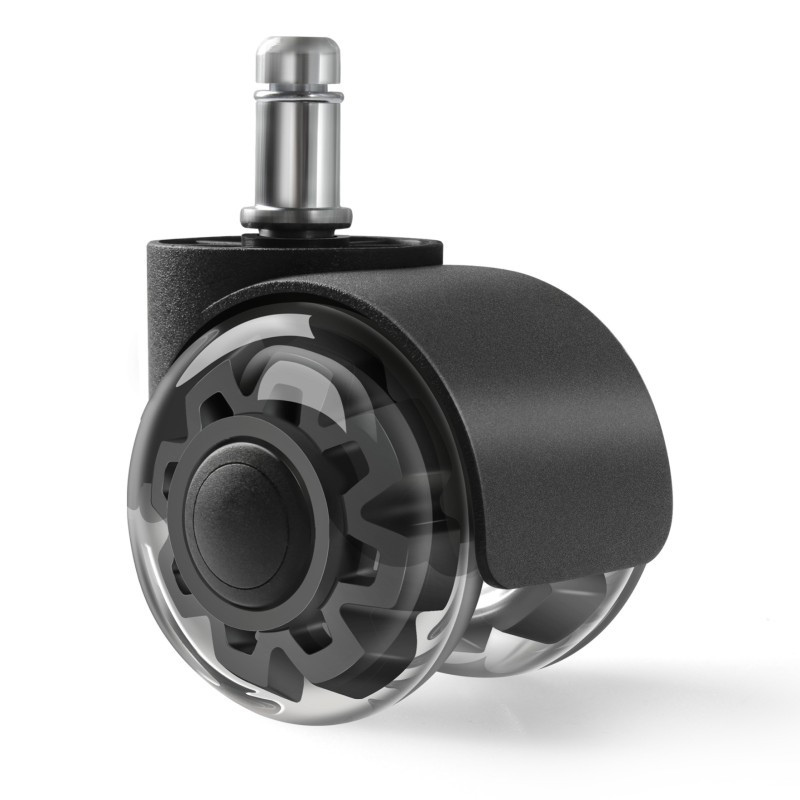 A vastag, átlátszó szintetikus gumi külső réteg biztosítja, hogy a kerekek ne karcolják meg és ne hagyjanak nyomot a padlón. Ideális fa, vinil, csempék, laminált padlók, szőnyegek és tipikus irodai felületek használatára. Alacsony szőnyegen is simán gördülnek.