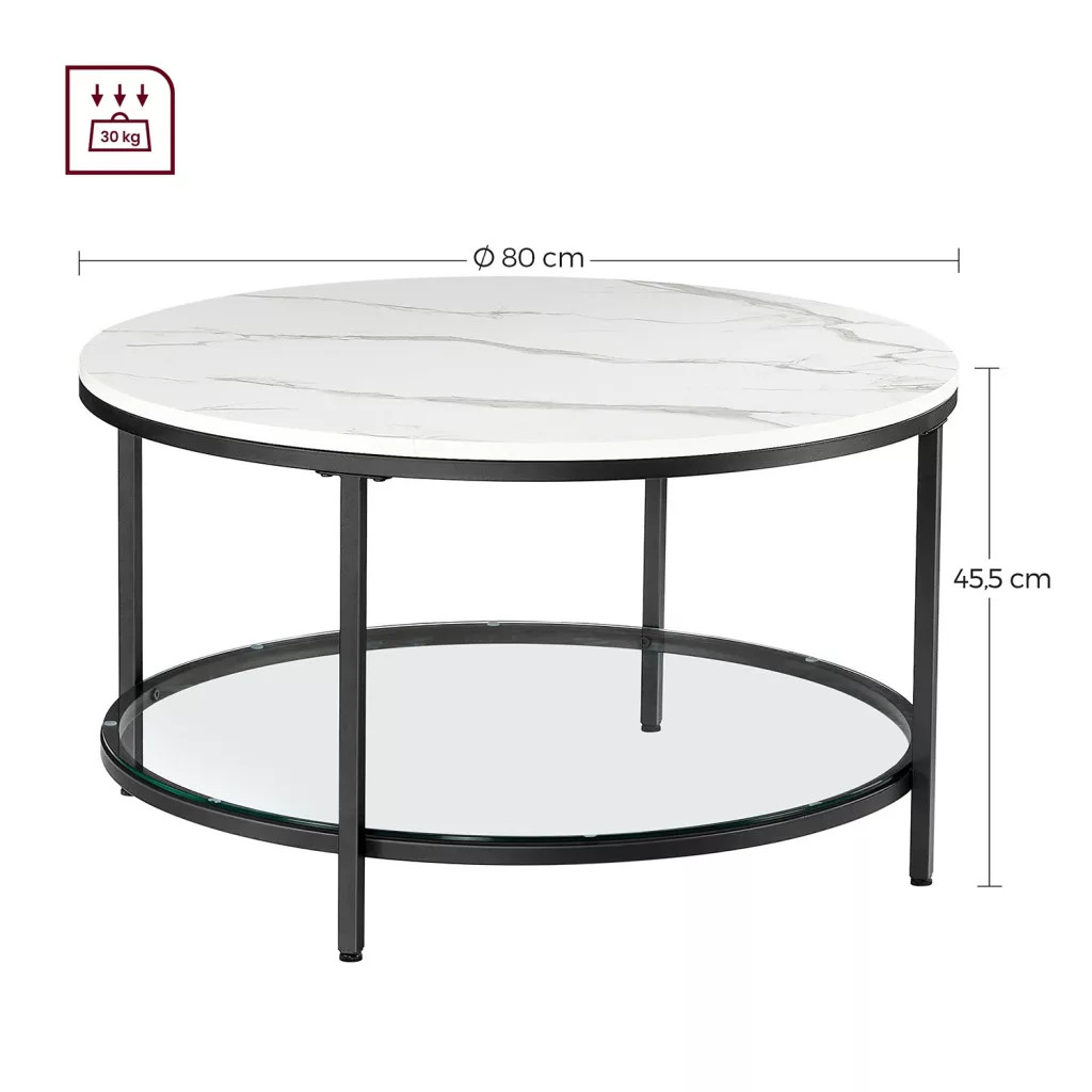 VASAGLE Kerek dohányzóasztal, fehér 80x80x45cm