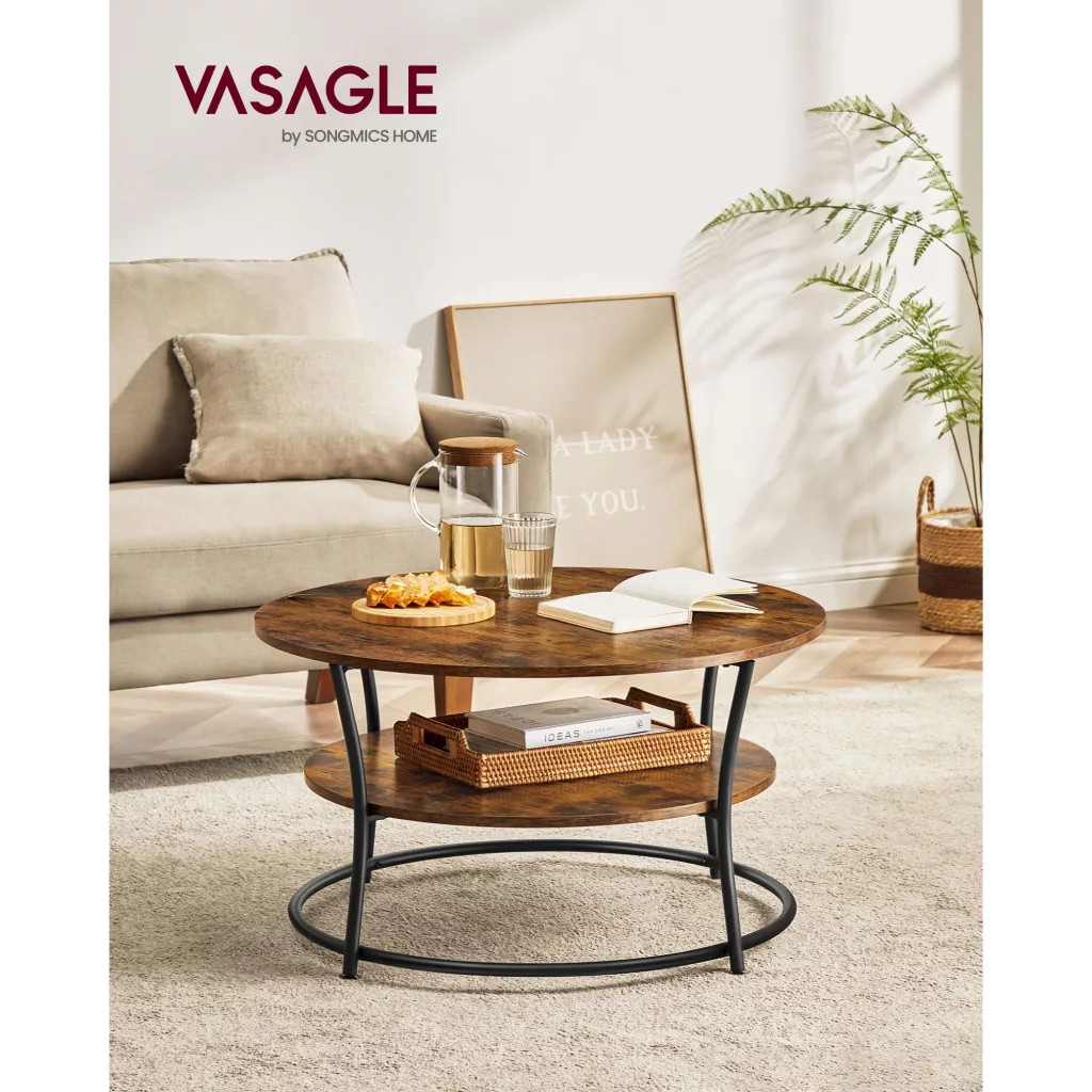 VASAGLE Kerek dohányzóasztal, rusztikus barna 80x80x45cm
