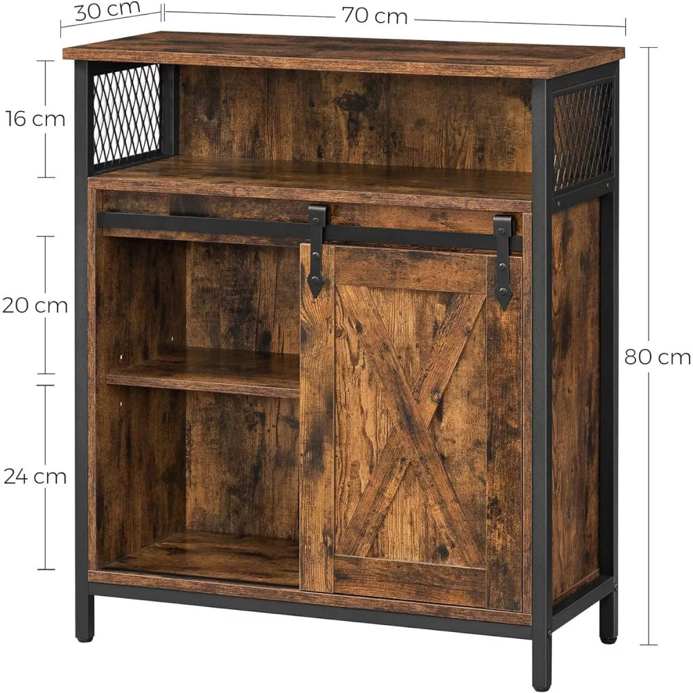 Komód elhúzható ajtóval és nyitott polcokkal, rusztikus barna 70x30x80cm