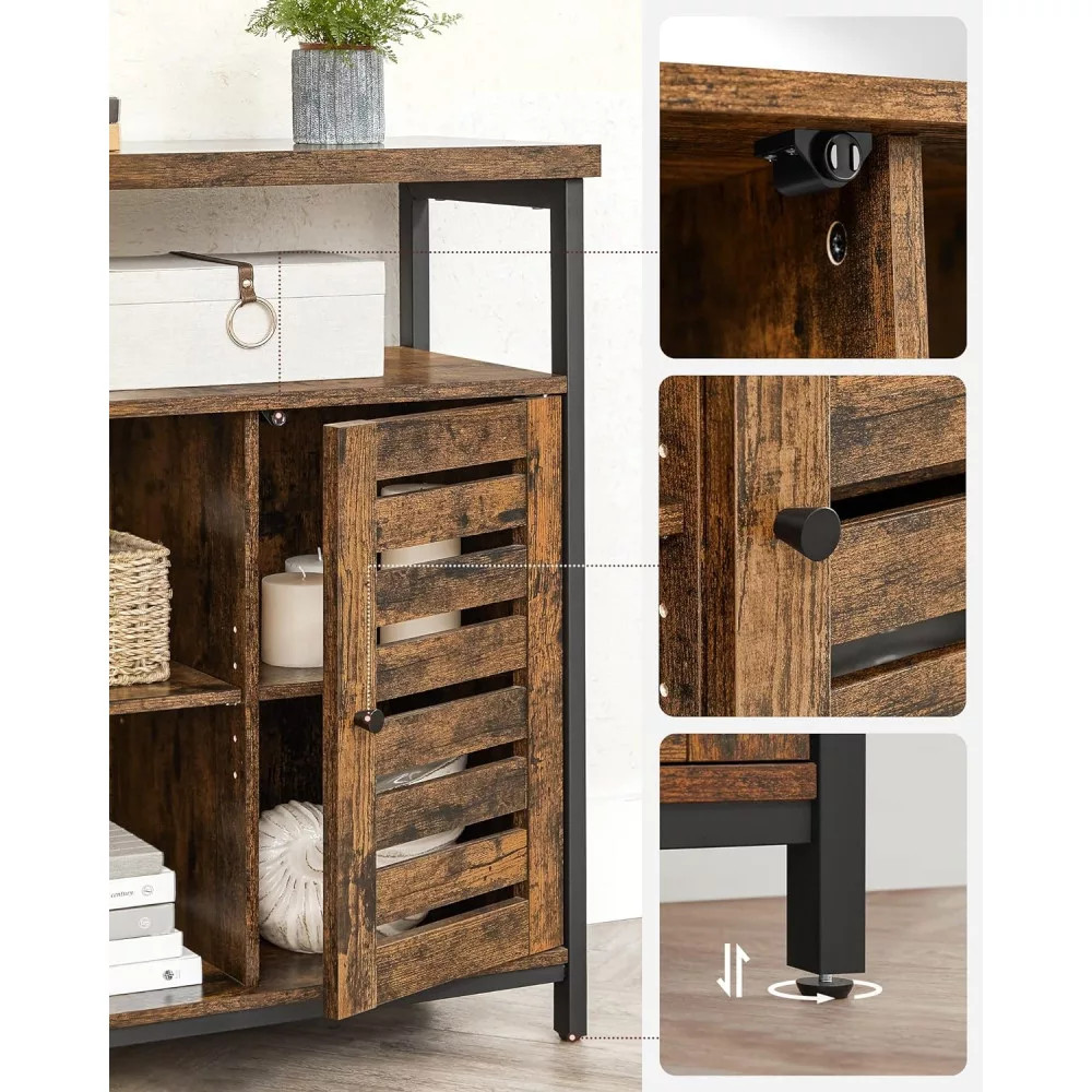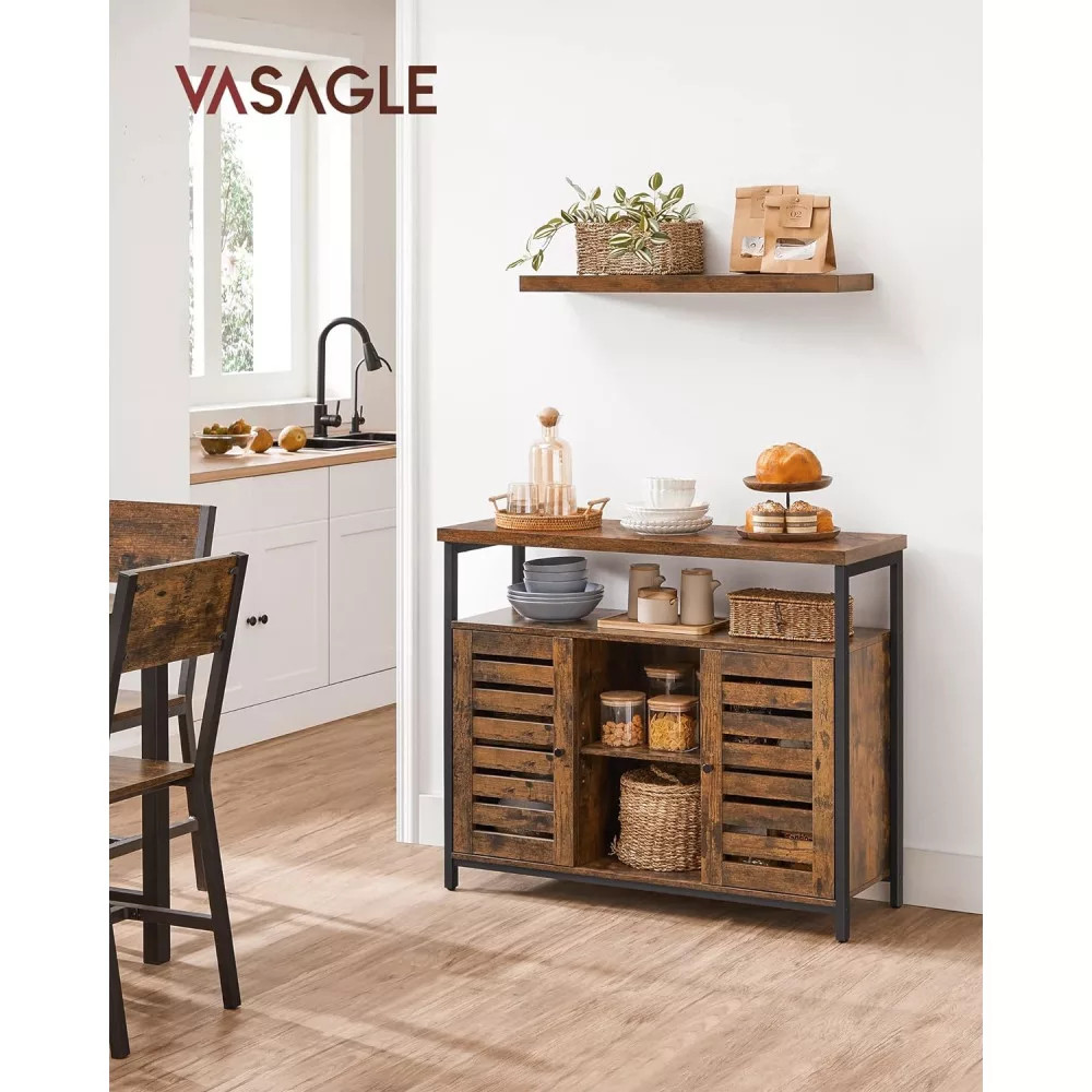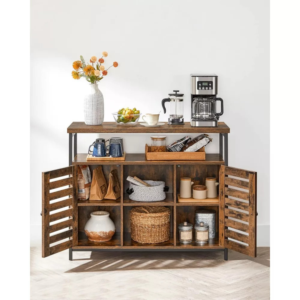 Hely mindennek: A tágas asztallap, 1 nagy nyitott polc, 2 nyitott rekesz és 2 állítható polc, amelyek 2 klasszikus zsalugáteres ajtó mögött rejtőznek, rengeteg tárolóhelyet biztosítanak ebben a tágas padlószekrényben dekorációk, konyhai eszközök és egyebek számára.