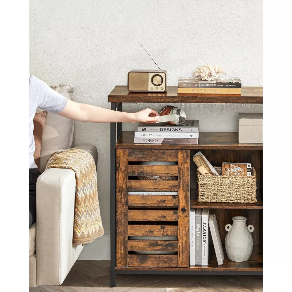 Bájos mindenhol: Az ipari elemek és a rusztikus barna tónusok meleg, hívogató megjelenést kölcsönöznek ennek a bájos tárolószekrénynek, így tökéletes választás egy elegáns előszoba, étkező, nappali és más helyiségek kialakításához.