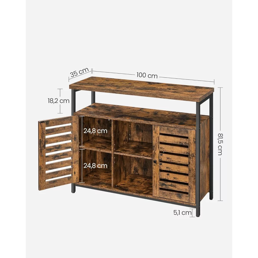 Komód két ajtóval és nyitott polcokkal, rusztikus barna 100×35×81cm