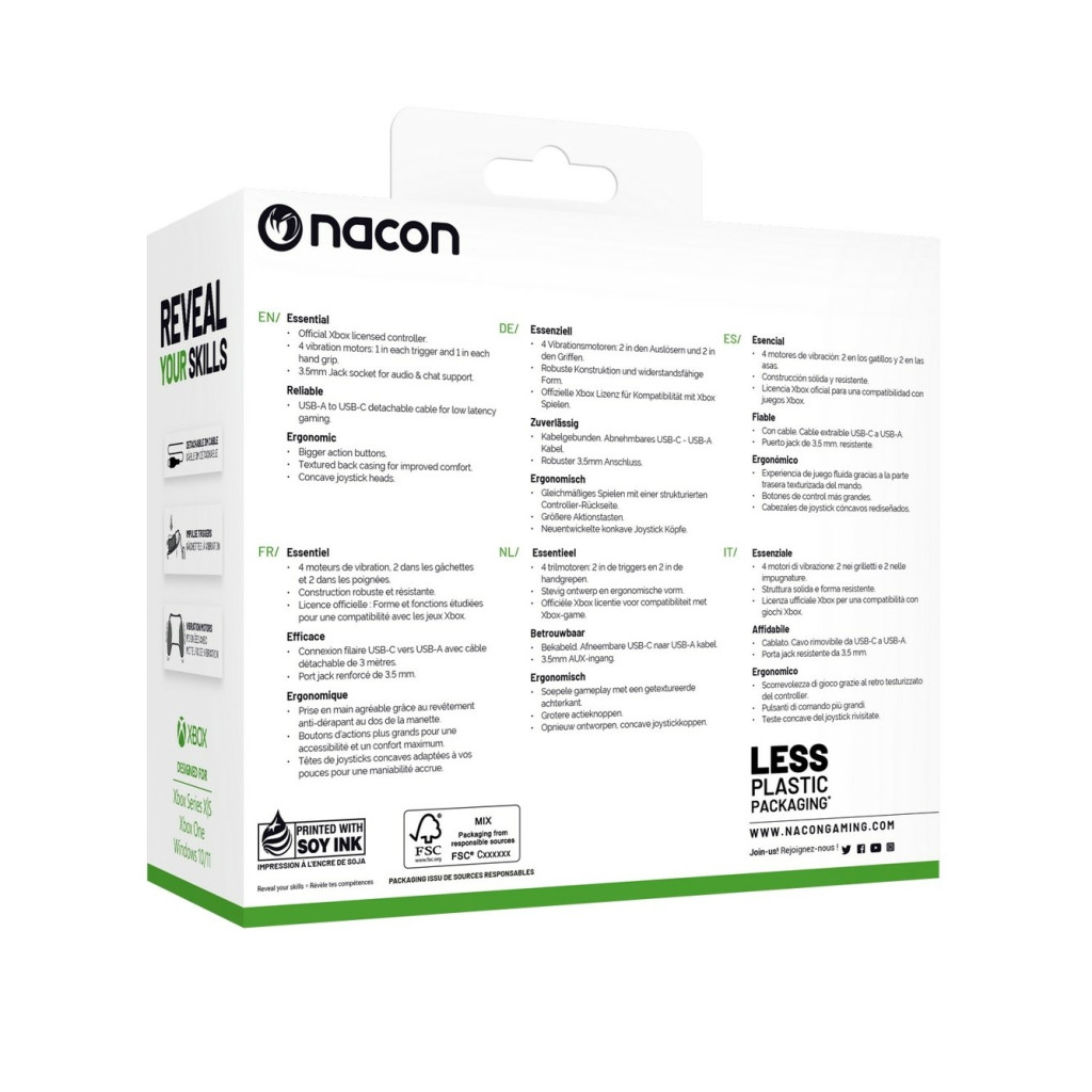 Ergonomikus kialakítással, 4 vibrációs motorral. 3 méteres levehető kábellel, 3,5 mm-es jack csatlakozóval a tartósság jegyében. A nagyobb méretű akciógombok segítik a maximális játékélmény elérését. A hüvelykujjhoz igazított joystick fejek az extra jó manőverezhetőséget biztosítják.