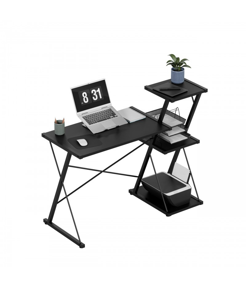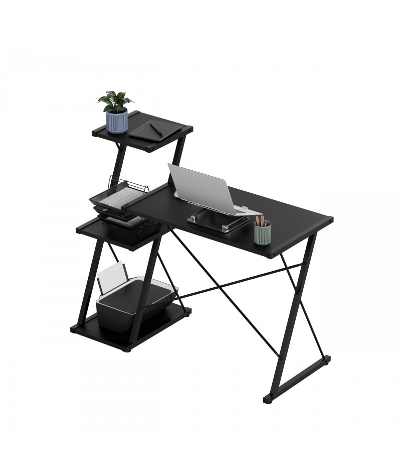 Összecsukható íróasztal, bal és jobb oldalú kivitel, három polccal, 116x50x93cm, Fekete