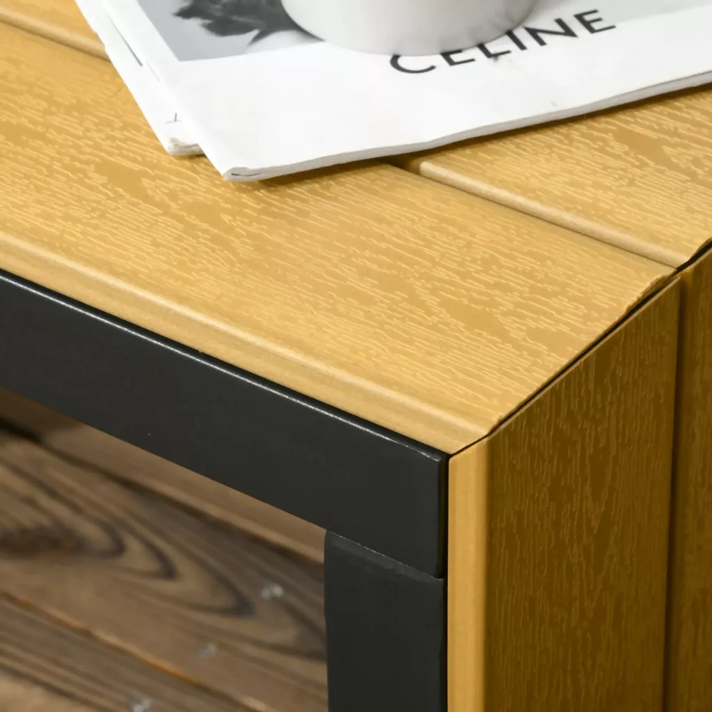 Elegáns fa megjelenés: A kifinomult, kompakt oldalsó asztal tökéletesen kiegészíti az ülőhelyeket, és gyönyörű fa megjelenésű, amely zökkenőmentesen illeszkedik bármilyen kerti környezetbe.