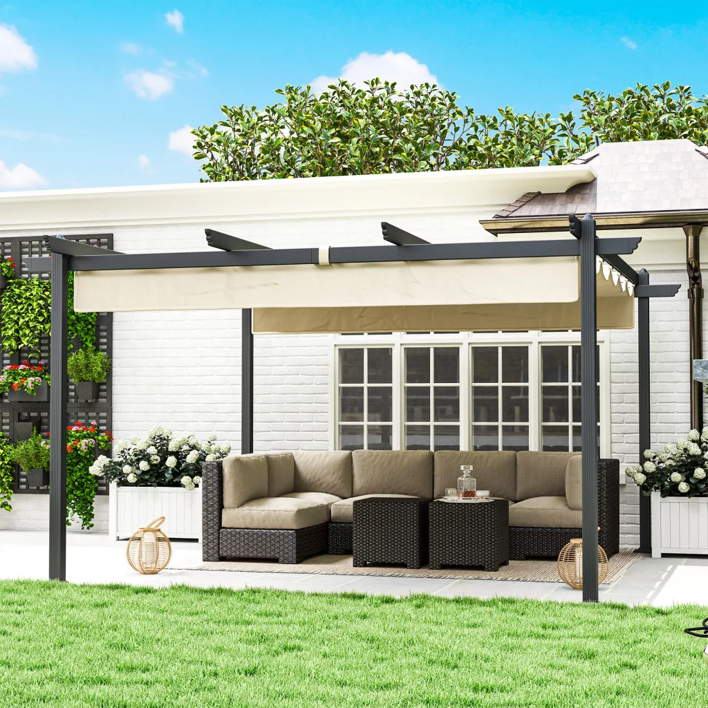 Sokoldalú felhasználás: Ez az alumínium pergola multifunkcionális térré alakítja kertjét összejövetelekhez, grillezéshez vagy pihentető órákhoz egy árnyékos menedékben.