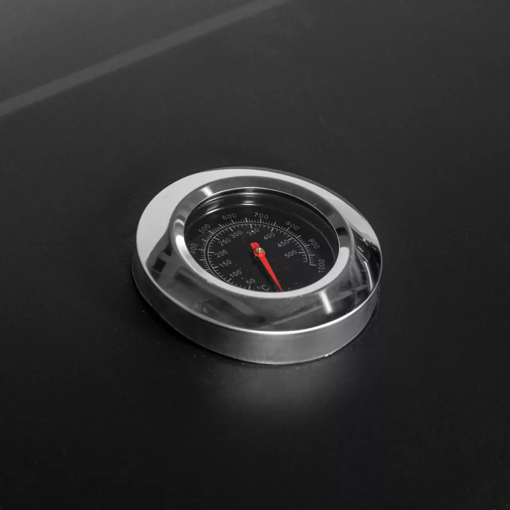 Kényelmes hőmérséklet-szabályozás: A faszéntartó rekesz magassága állítható a kézi hajtókar elforgatásával, és a faszén könnyen hozzáadható az elülső ajtón keresztül. A grillsütő fedele segít megtartani a hőt, a fedélen található állítható szellőzőnyílások és termosztát pedig lehetővé teszi a belső hőmérséklet szabályozását.