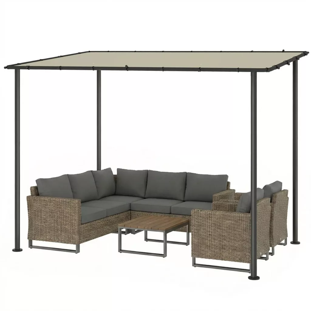 Letisztult, minimalista dizájn: Letisztult vonalaival és elegáns krémfehér felületével ez a pergola harmonikusan illeszkedik teraszára vagy kertjébe. Finom, stílusos megjelenést kölcsönöz családi összejöveteleknek és kerti partiknak.
