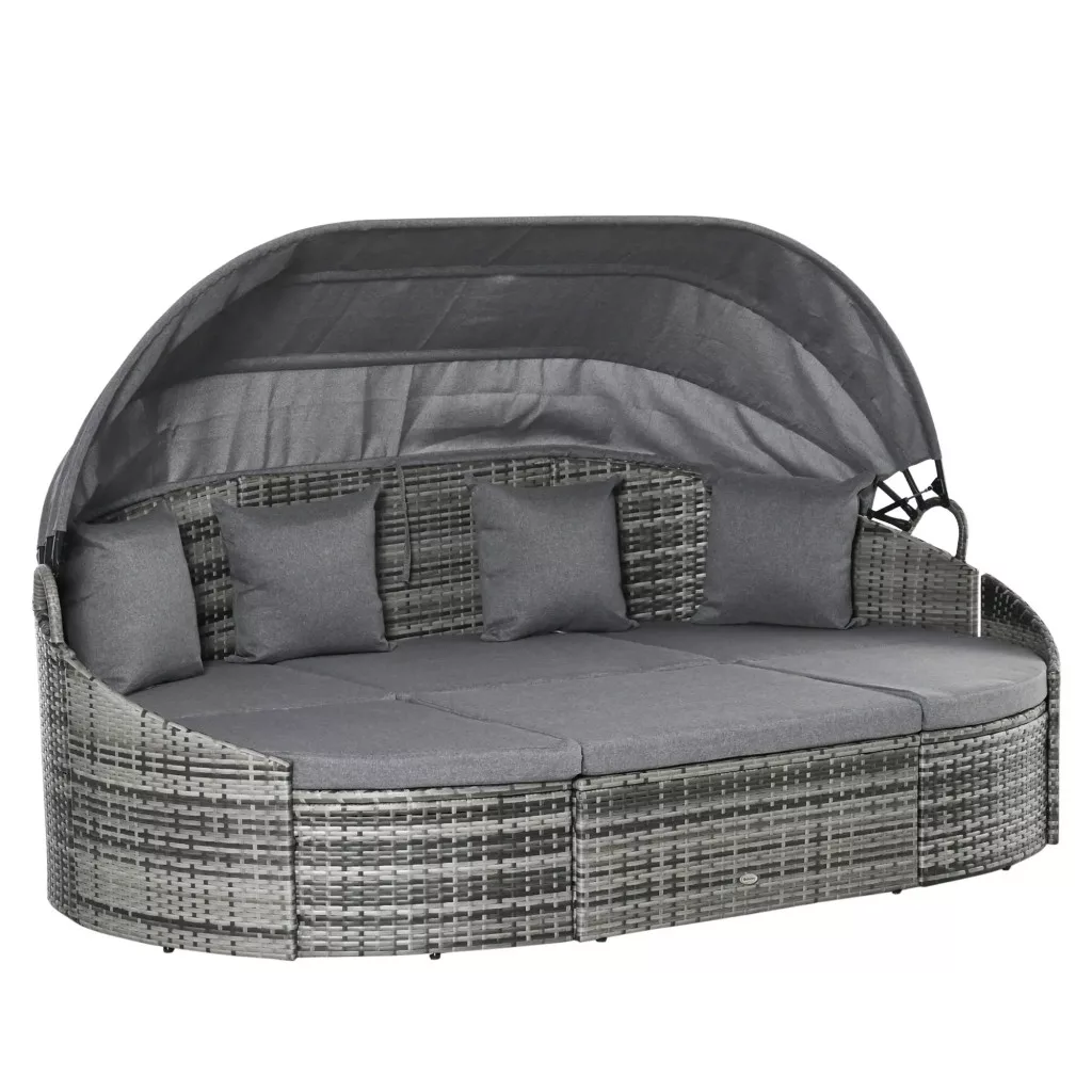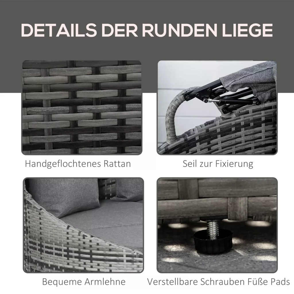 NÉGY RÉSZES PIHENŐGARNITÚRA: A Patio PE rattan pihenőgarnitúra négy darabból áll, és kerek heverővé vagy dohányzóasztallal ellátott kanapévá alakítható. Válasszon a különféle lehetőségek és kombinációk közül, mivel minden darab könnyen mozgatható és átrendezhető.