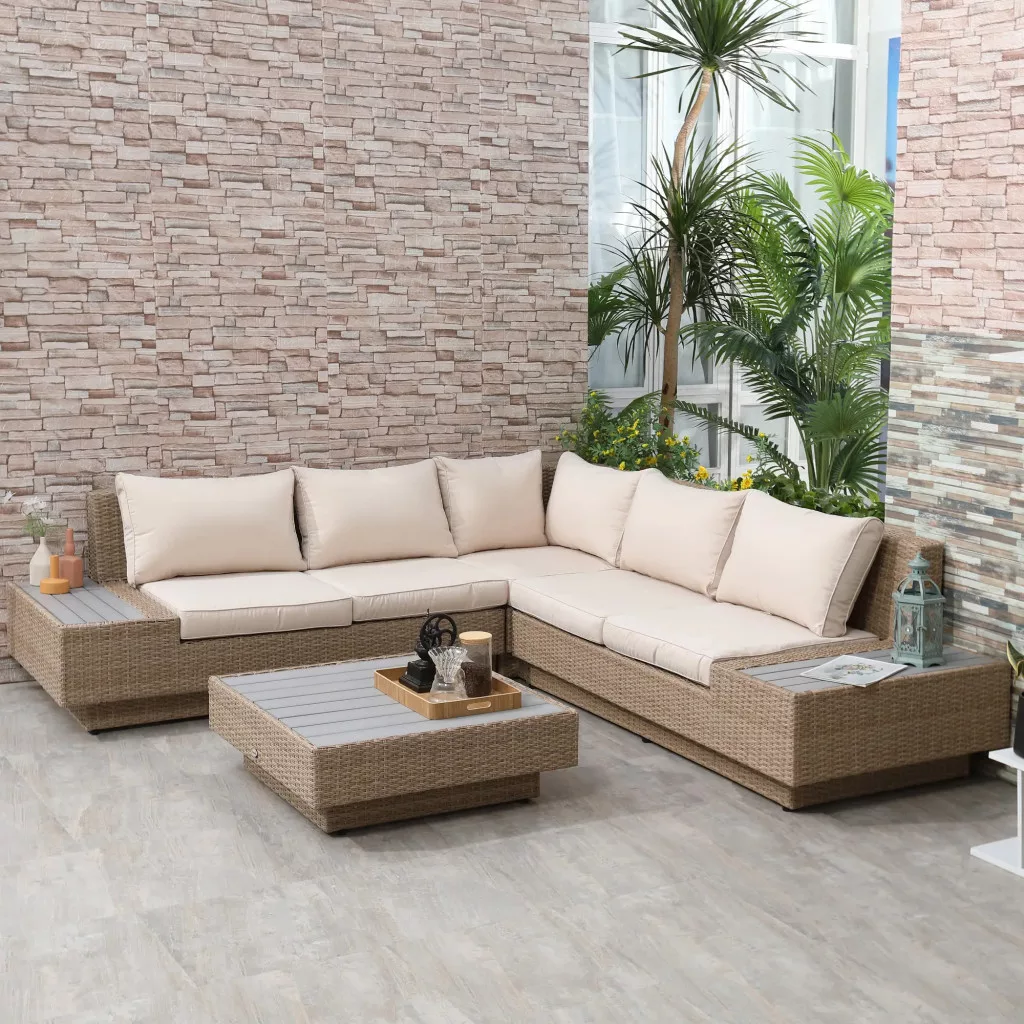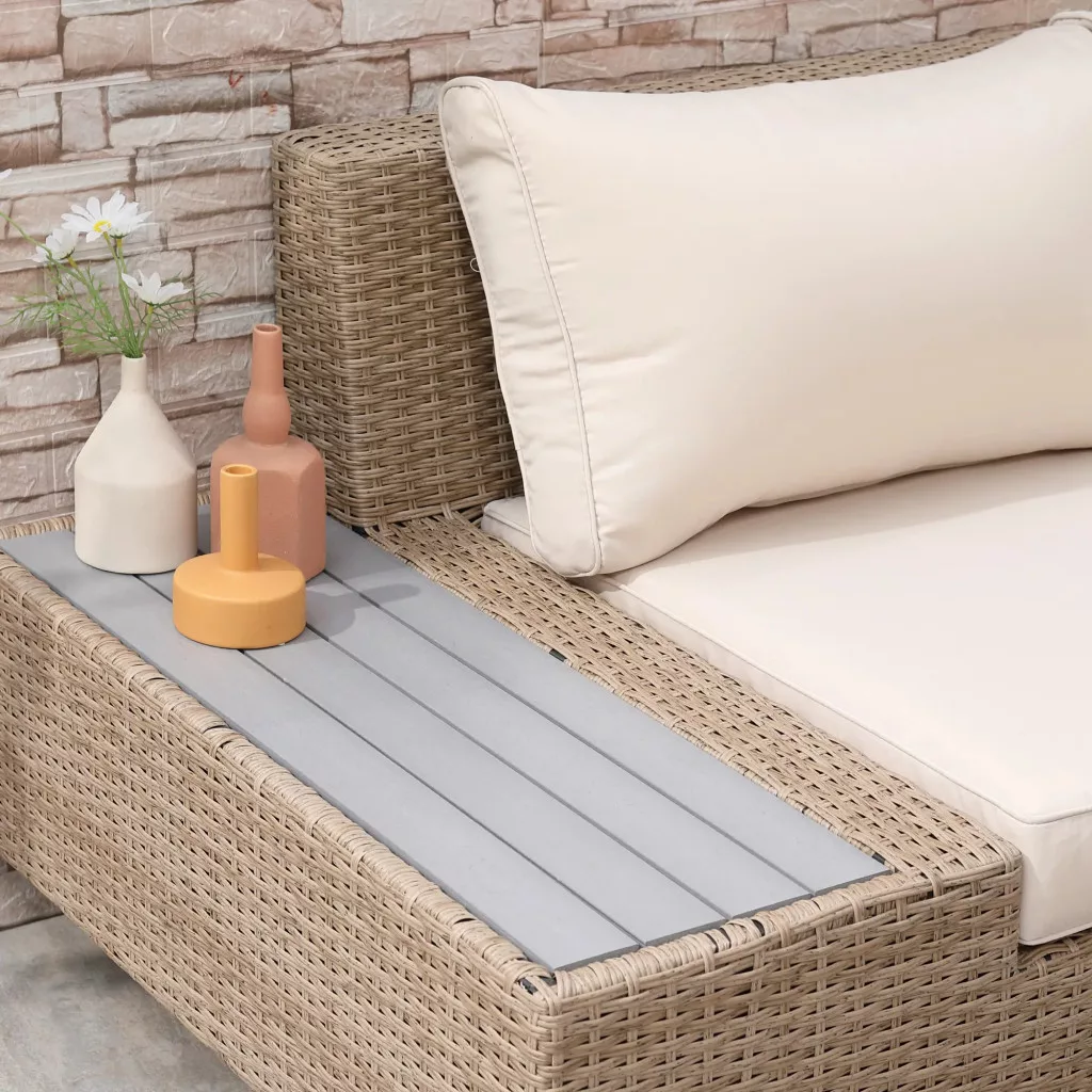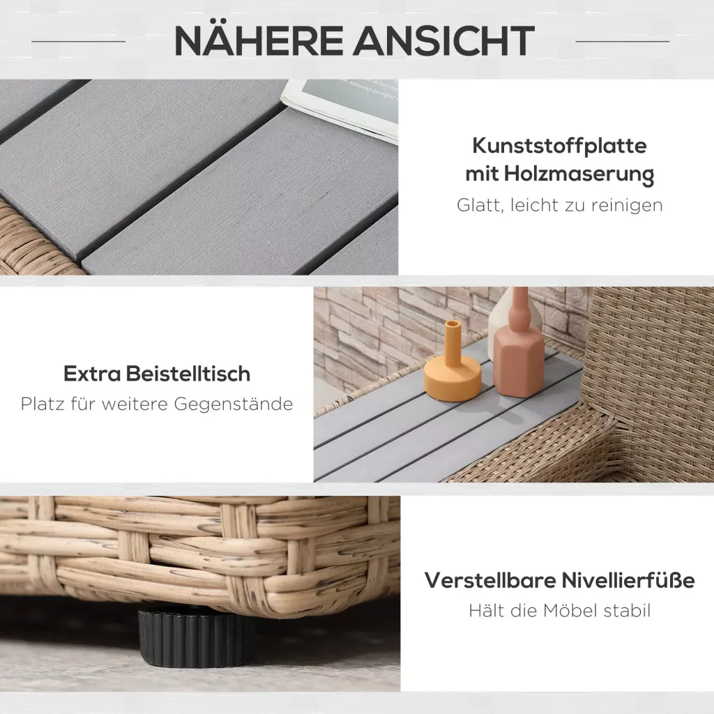 Élvezd ki a nyarad ezzel az Outsunny kanapégarnitúrával! A négyrészes garnitúra modern, kiváló minőségű szintetikus rattanból készült, melynek időjárásálló szövése kézzel készült, és lenyűgöző robusztusságával, valamint nedvesség- és UV-sugárzásállóságával büszkélkedhet. A rozsdamentes acélváz nagy stabilitást biztosít, a széles, nagyméretű párnák pedig kivételesen kényelmes ülési élményt nyújtanak. Kezdődjön a nyár!