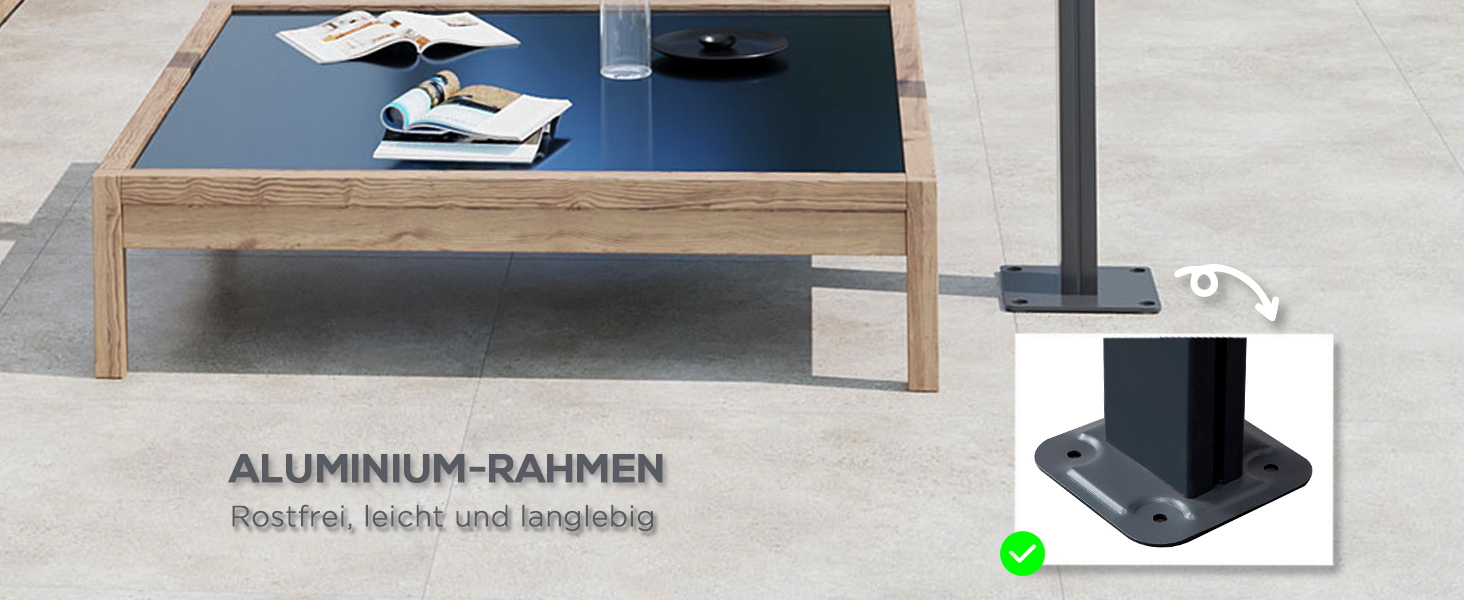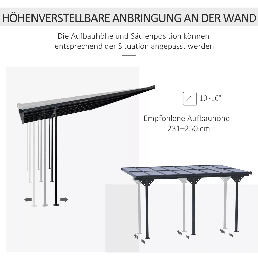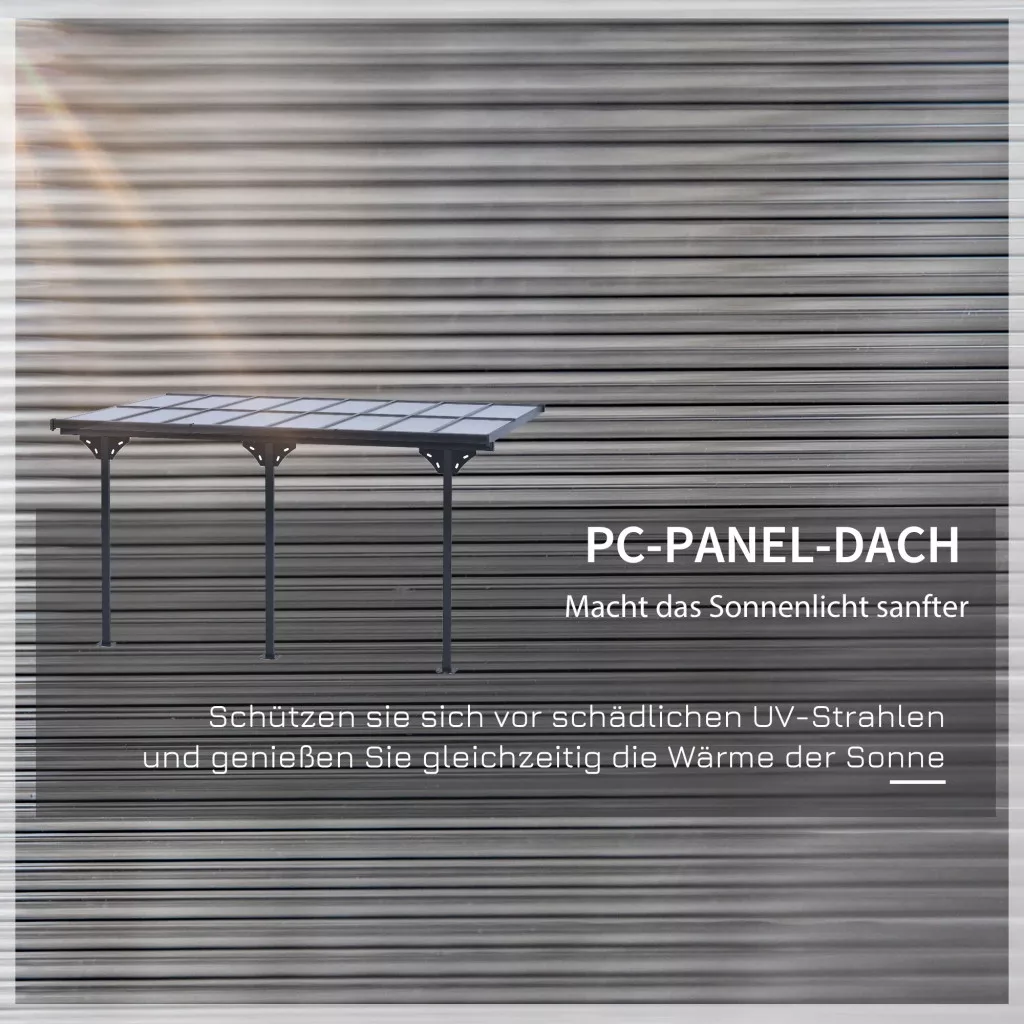 KÜLTÉRI HASZNÁLATRA: Ez a napellenző robusztus alumínium keretből és tartós műanyag panelekből készült tetőből áll, így rozsdamentes és időjárásálló.