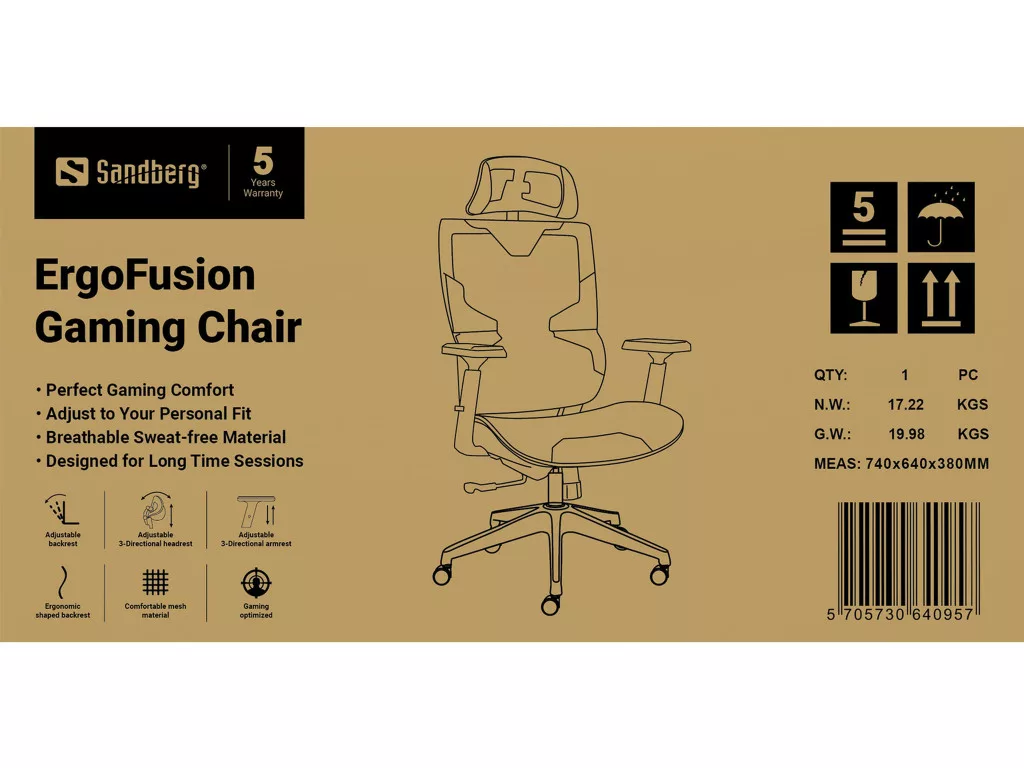 A Sandberg Ergo Fusion + a 2025-ös év egyik legnépszerűbb belépő szintű gamer széke: teljesen fekete, letisztult dizájn, lélegző mesh háttámla és jó ár-érték arány. Tökéletes hosszú gaming sessionökhöz, home office-hoz vagy irodai munkához – ergonomikus S-alakú háttámla, állítható deréktámasz és kényelmes párnázott karfák jellemzik.