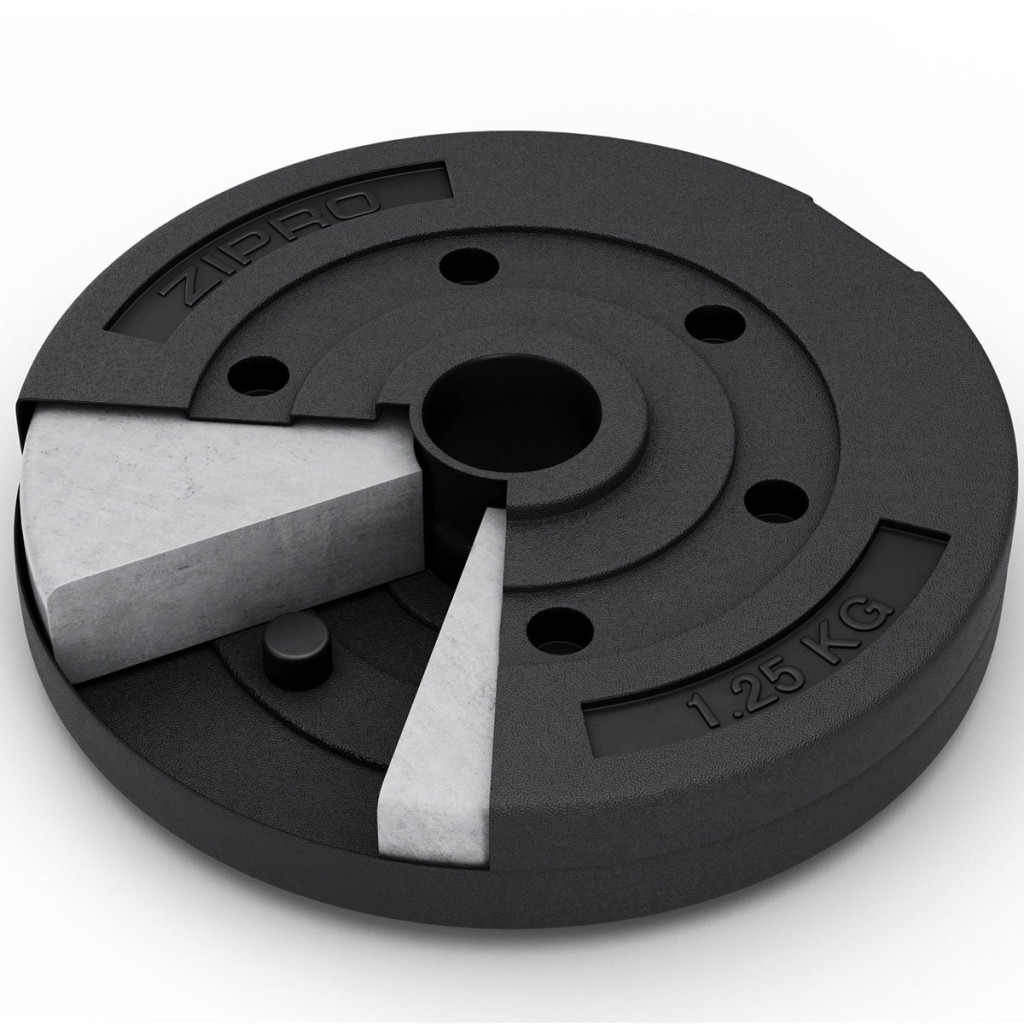 Zipro súly tartós műanyag borításban. A teher ergonomikusan formázott, edzés közben csendes, és nem ütődik vagy karcolódik a griffre helyezve. A strapabíró borítás biztosítja, hogy a letétel vagy leejtés ne tegyen kárt a padlóban.
