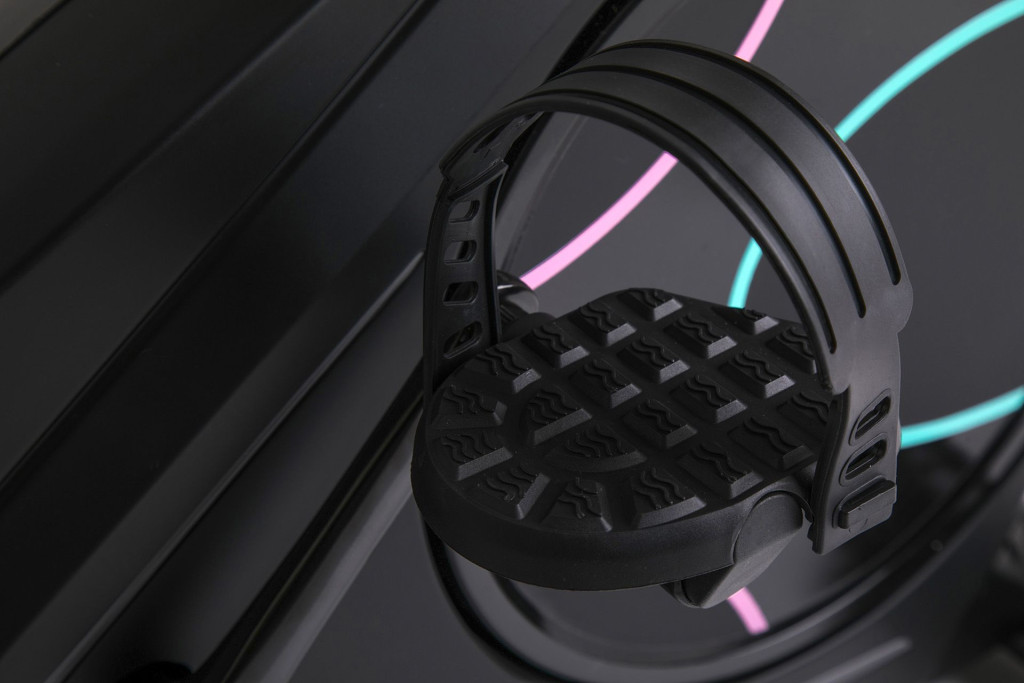 A kerékpár simán és csendesen működik, így kizárólag az edzésedre koncentrálhatsz. A kerékpár ergonomikus kialakítása, a két irányban állítható nyereggel és az állítható kormányszárral ideális kényelmet biztosít, magasságtól függetlenül. Az ellenállás szintjének gombbal történő beállítása helyett minden beállítás a számítógép paneljén vagy az okostelefonodon található iConsole+ alkalmazáson keresztül végezhető el.