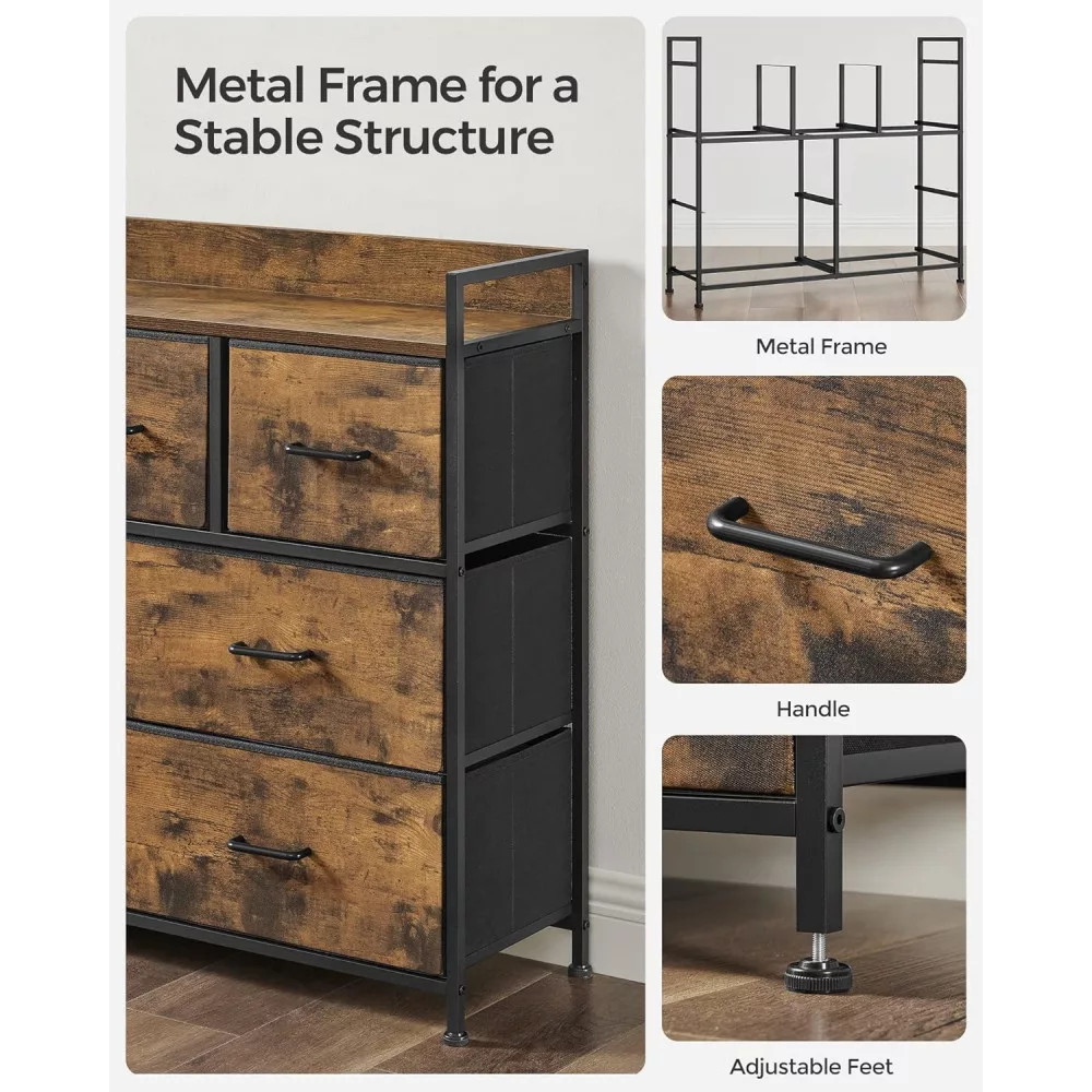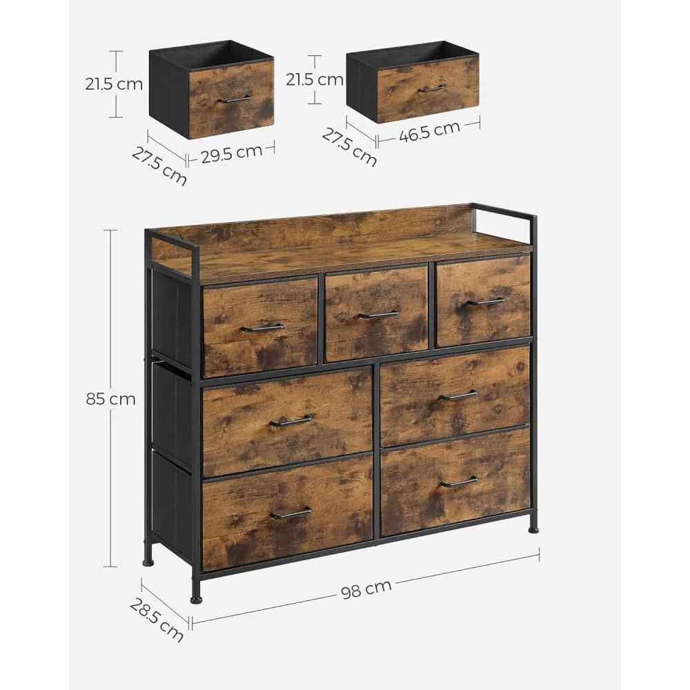 Tároló szekrény 7 szövet fiókkal, ruhás szekrény, rusztikus barna 98x28x85cm